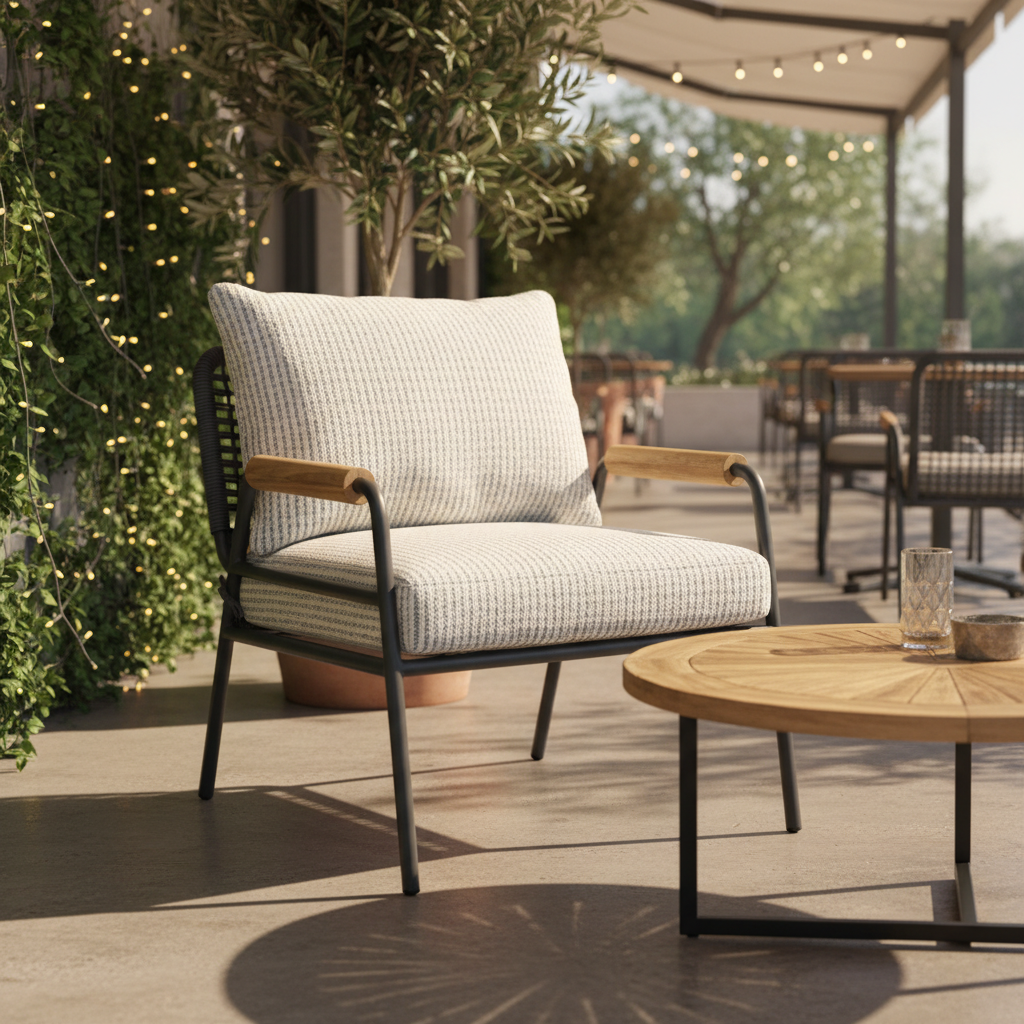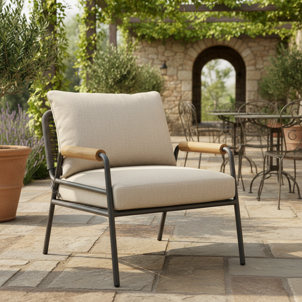 Lüks Dış Mekan Dinlenme Sandalyesi - Metal ve Ahşap Detaylı
