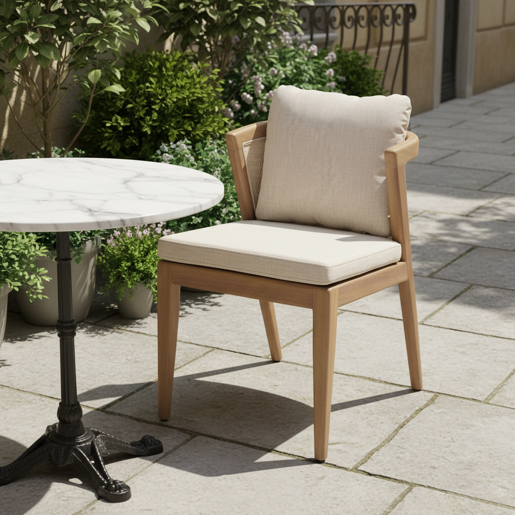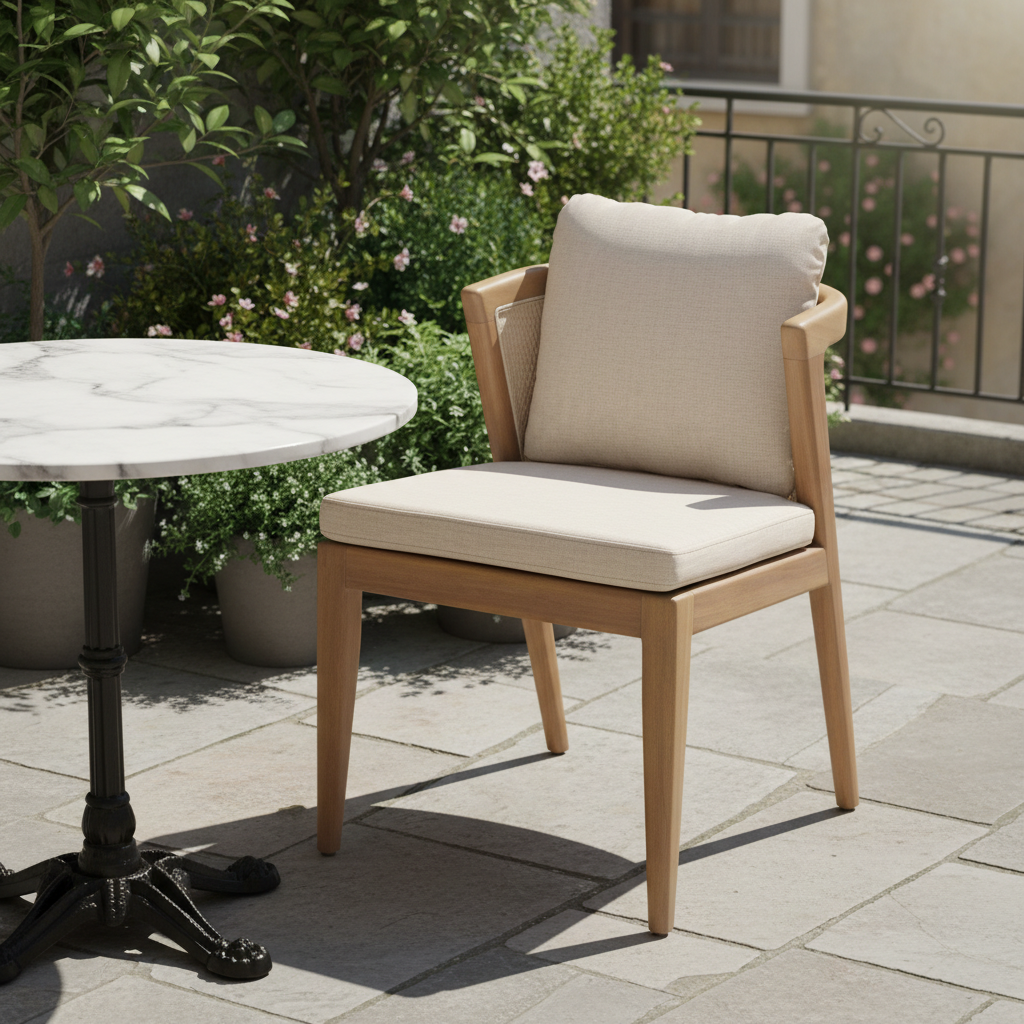 Konfor ve estetiği birleştiren bu sandalye, doğal ahşap yapısıyla uzun ömürlü kullanım vaat ediyor. Kalın ve yoğun dolgulu bej minderleri, uzun süreli oturumlarda dahi üst düzey rahatlık sunar. Sandalyenin kavisli ahşap hatları ve sırt kısmındaki lüks rattan (hasır görünümlü) işçilik detayı, ürüne karakteristik bir şıklık katmaktadır. Yemek odalarından, balkon veya kış bahçesi gibi özel oturma alanlarına kadar her yere uyum sağlar. Stil sahibi bir mobilya yatırımı arayanlar için tasarlandı.