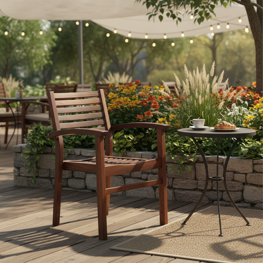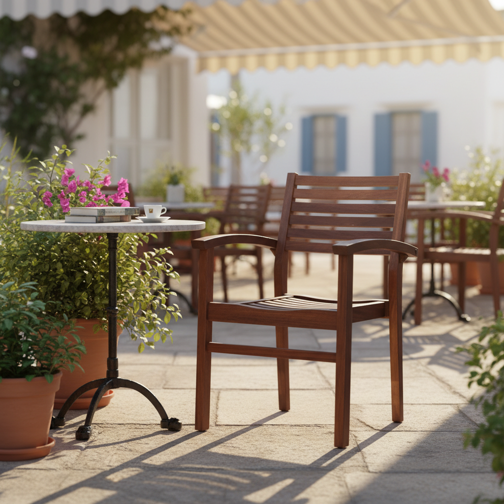 Bu sandalye, dayanıklı ahşap yapısı ve konforlu kollukları ile hem iç hem de dış mekanlara zamansız bir zarafet katıyor. Akdeniz esintili tasarımıyla terasınızda, balkonunuzda ya da yemek alanınızda sıcak ve davetkar bir atmosfer yaratın. Kaliteli malzemesi sayesinde uzun yıllar boyunca keyifli anlarınıza eşlik edecek.