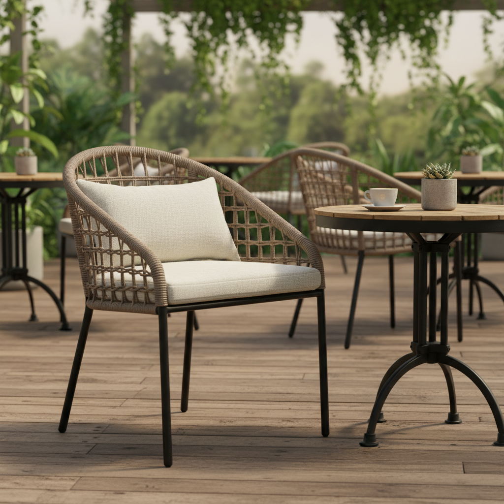 Neva Örme Kollu Koltuk ile dış mekanlarınızda zarafet ve konforu bir araya getirin. Modern örme yapısı ve rahat minderleriyle gün boyu keyifli anlar sunan bu koltuk, her türlü teras, balkon veya bahçe dekorasyonuna mükemmel uyum sağlar. Dayanıklı metal ayakları ve şık tasarımıyla mekanınıza sofistike bir dokunuş katarken, uzun ömürlü kullanım vadediyor.