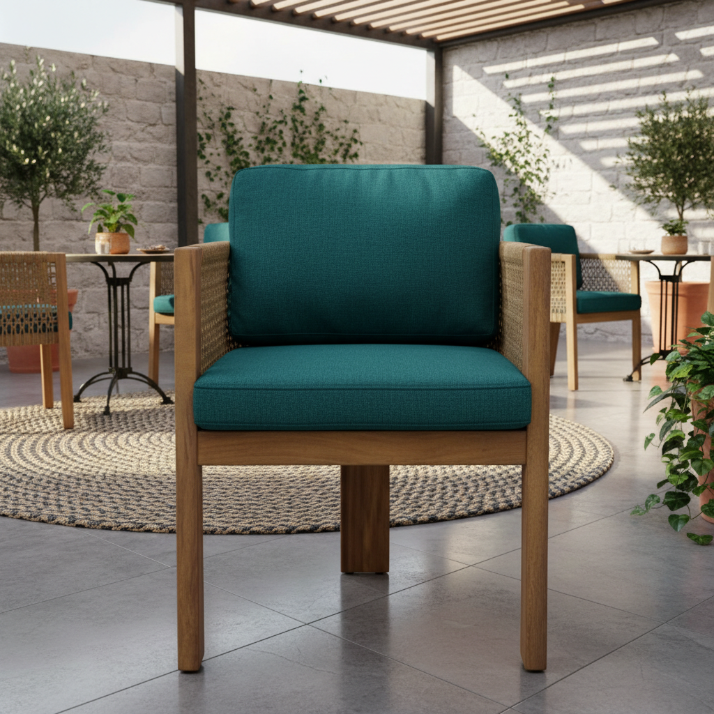 Riva Rattan Örgülü Kollu Sandalye ile iç ve dış mekanlarınızı zamansız bir zarafetle taçlandırın. Sağlam ahşap iskeleti ve el işçiliği rattan örgü detaylarıyla konforu ve stili bir araya getiren bu sandalye, yumuşak kumaş minderleriyle lüks bir oturma deneyimi sunar. Modern bohem bir dokunuşla mekanlarınıza sıcaklık ve davetkar bir atmosfer katın.