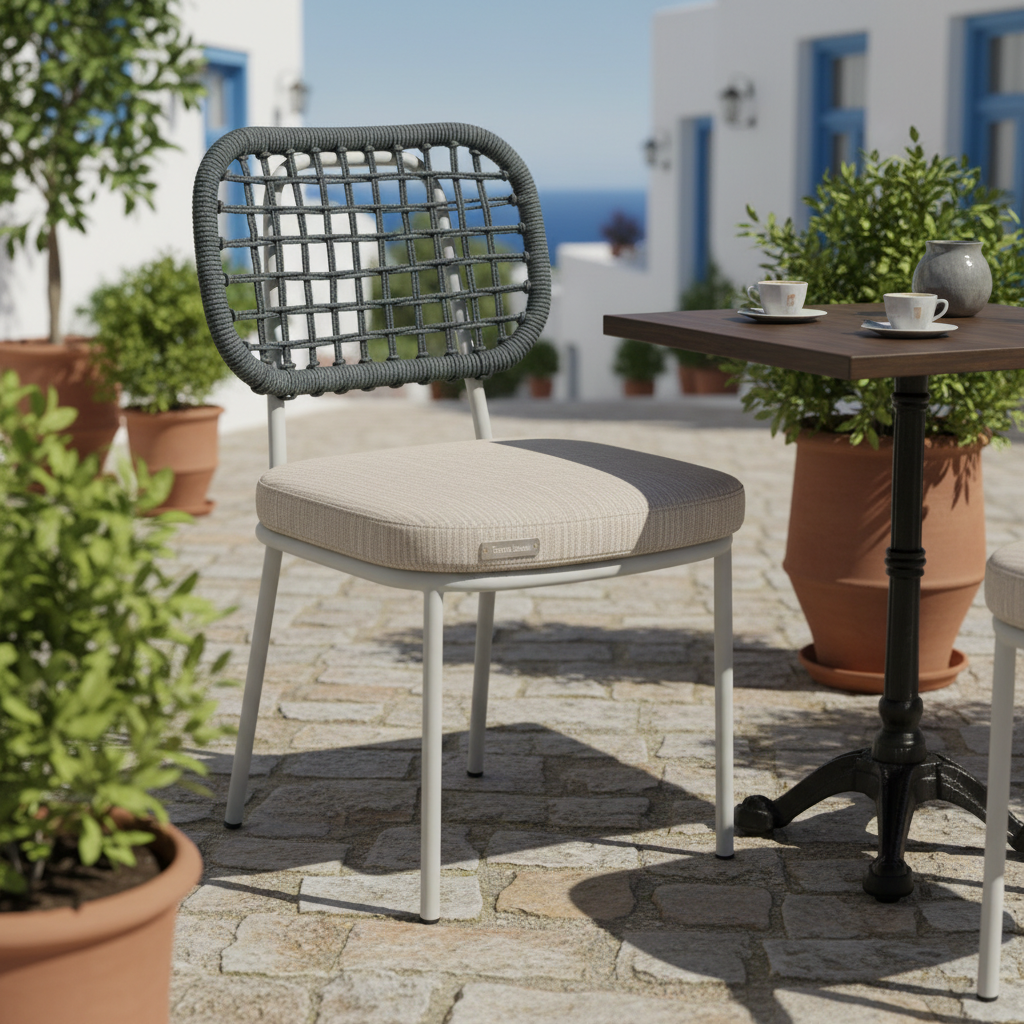 Eos Örme Sandalye, dış mekanlarınıza modern bir dokunuş katarken, iç mekanlarda da göz alıcı bir stil yaratır. Özgün örgü sırtlığı ve konforlu minderli oturumuyla, uzun sohbetleriniz ve keyifli anlarınız için ideal bir seçimdir. Dayanıklı metal iskeleti sayesinde hem estetik hem de fonksiyonel bir kullanım sunar.