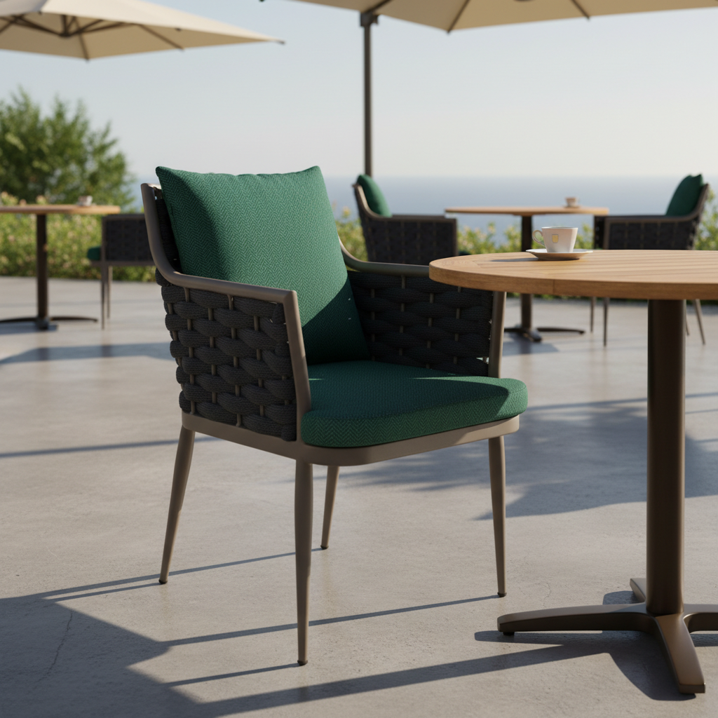Mora Kollu Örme Sandalye ile dış mekanlarınıza zarafet ve dayanıklılık katın. Modern tasarımı ve hava koşullarına dayanıklı örme detaylarıyla hem göz alıcı hem de konforlu bir oturma deneyimi sunar. Uzun süreli misafir ağırlama veya keyifli anlarınız için idealdir.