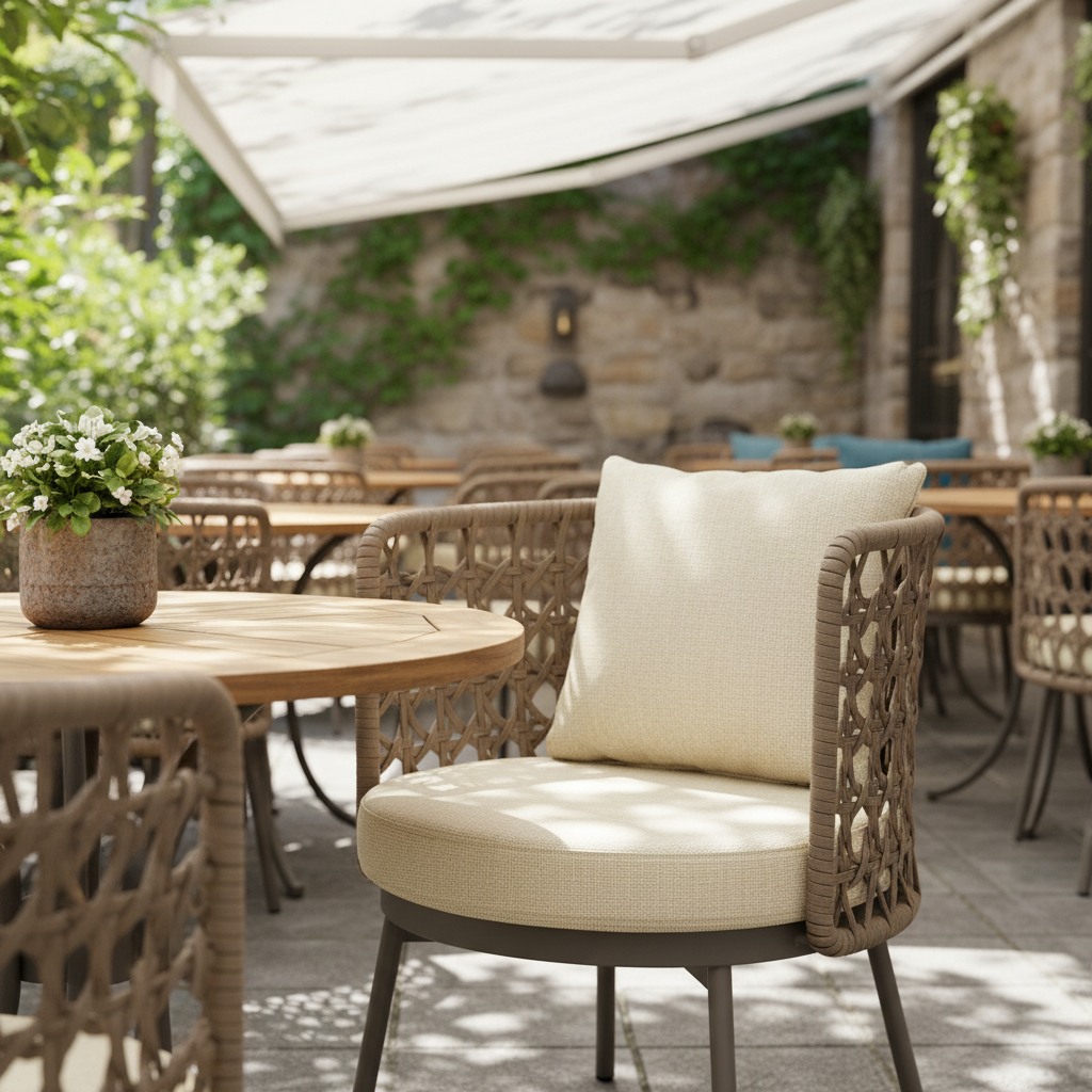 Vita Kollu Örme Sandalye ile dış mekanlarınıza zarafet ve konfor katın. Modern ve bohem detayları harmanlayan bu sandalye, dayanıklı örme yapısı ve lüks minderleriyle unutulmaz anlar vadediyor. Cafe, restoran veya evinizin bahçesi için ideal olan Vita, her anı bir kaçışa dönüştürecek.