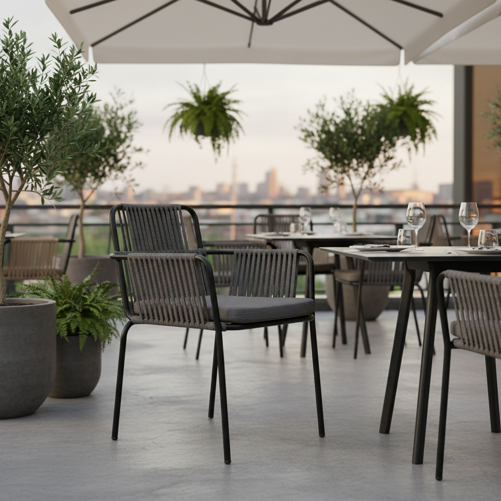 Dış mekanlarınızı Akdeniz esintisiyle taçlandırın! Terra Kollu Halat Örgü Sandalye, modern metal iskeleti ve doğal halat örgüsüyle hem göz alıcı bir estetik sunar hem de dayanıklılığı garanti eder. Konforlu minderiyle uzun yaz akşamları ve keyifli sohbetler için ideal bir oturma deneyimi vadediyor.