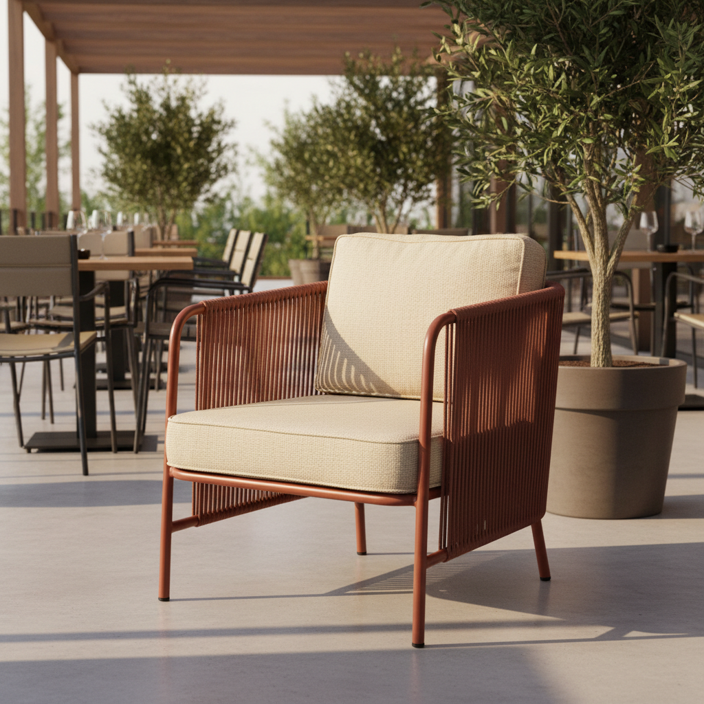 Deniz kenarındaki teraslardan şehir bahçelerine, Kato Halat Örgü Koltuk, dış mekan yaşam alanlarınızı zarafet ve rahatlıkla buluşturuyor. Şık metal iskeleti ve dayanıklı halat örgüsüyle dikkat çeken bu koltuk, kalın kumaş minderleriyle üst düzey konfor sunar. Güneşin batışını izlerken veya dostlarınızla sohbet ederken stilinizi yansıtan eşsiz bir atmosfer yaratın.