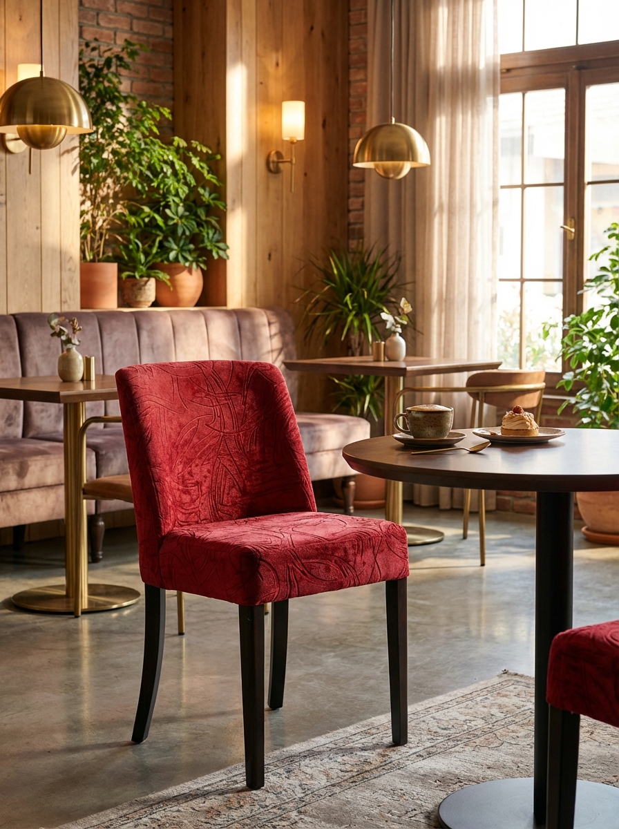 Mekanınıza modern zarafet katacak Diva Kumaş Sandalye, özgün desenli kumaşı ve zarif ahşap ayaklarıyla her ortamda dikkat çekiyor. Konforlu oturma alanı ve şık tasarımıyla hem gözünüze hem ruhunuza hitap edecek bu sandalye ile misafirlerinizi büyüleyin.