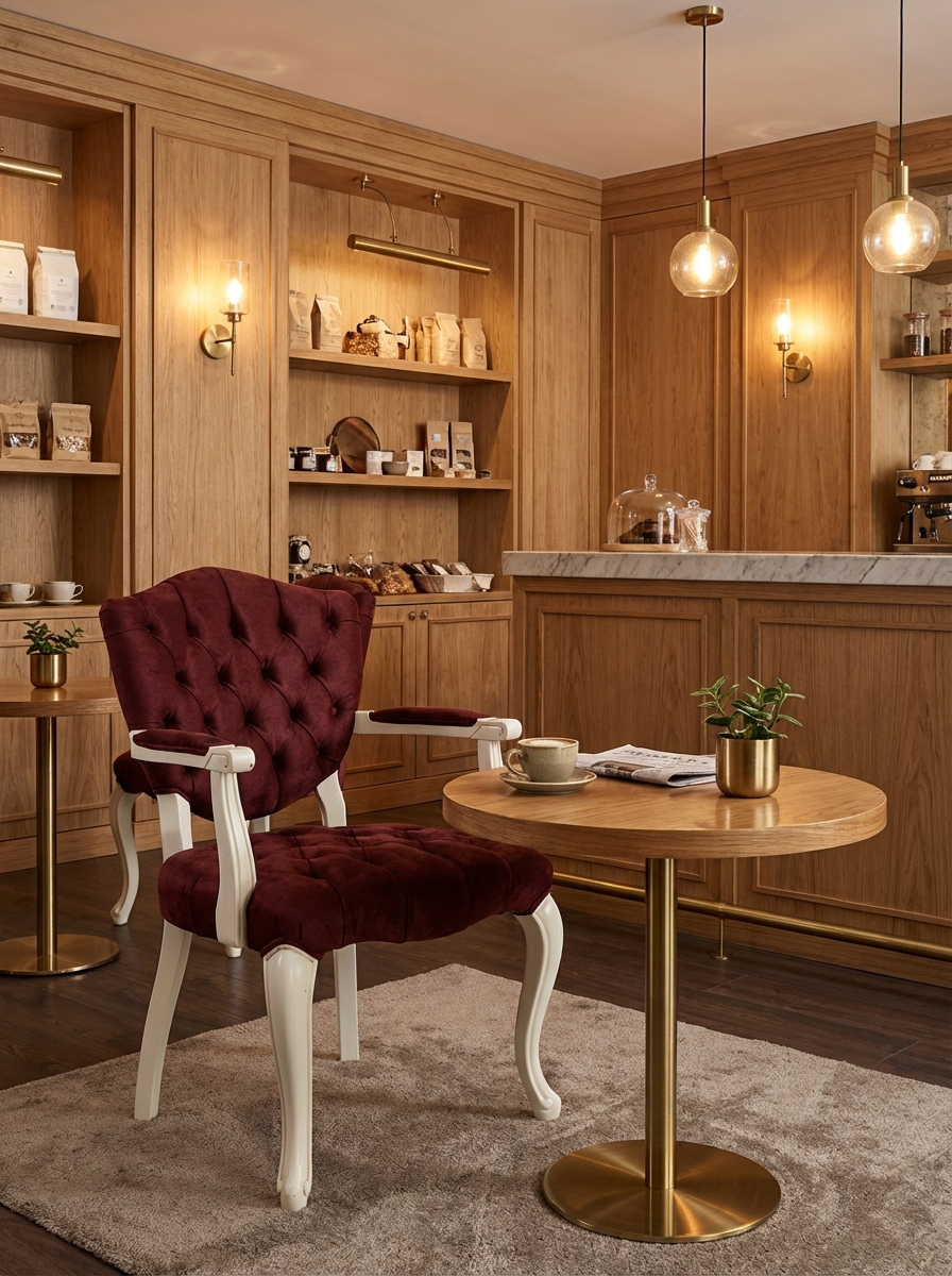 Klasik zarafetin modern yorumuyla tasarlanmış bu sandalye, mekanlarınıza asil bir dokunuş katıyor. Ergonomik kolları ve kapitoneli lüks kumaş kaplamasıyla uzun sohbetlerin keyfini çıkarırken, zarif kıvrımlı ahşap ayakları ile estetiği ve dayanıklılığı bir araya getiriyor. Davetkar duruşuyla yaşam alanlarınızda konfor ve şıklığı bir arada sunar.