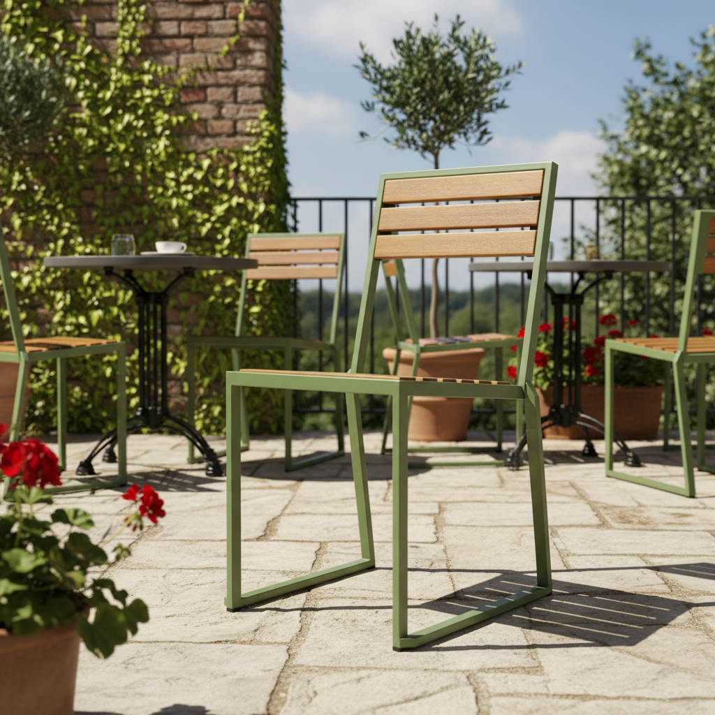 Alya Metal Ahşap Sandalye ile açık alanlarınıza modern bir dokunuş katın. Sağlam metal iskeleti ve doğal ahşap sırt detaylarıyla hem estetik hem de dayanıklılığı bir arada sunar. Hem şık kafelerde hem de evinizin bahçesinde rahatlıkla kullanabileceğiniz bu sandalye, keyifli anlarınız için ideal bir seçim.