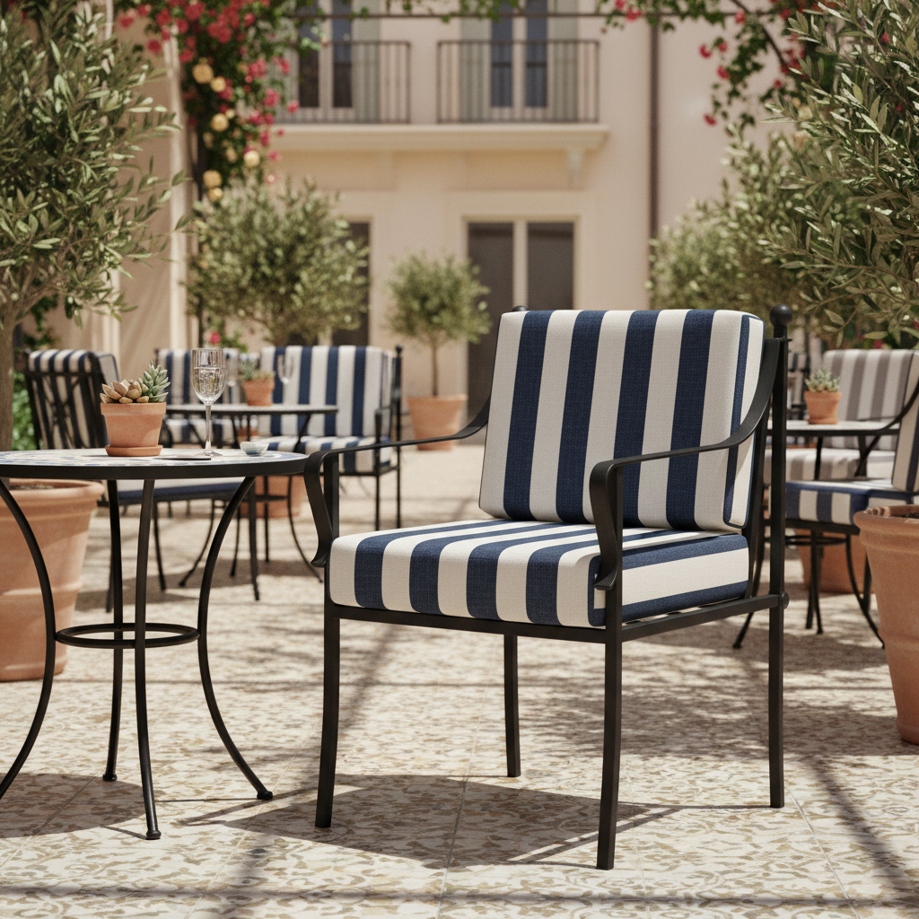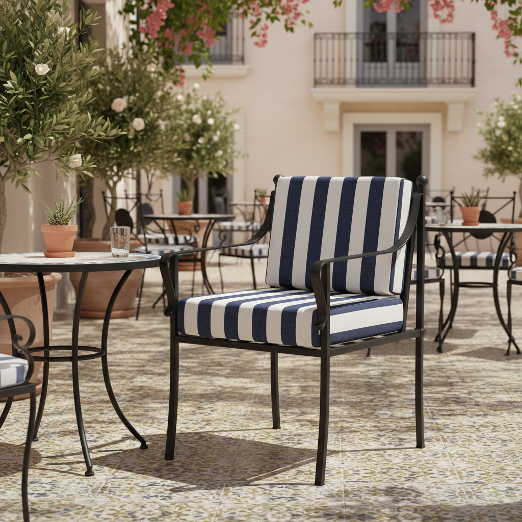 Klasik Ferforje Tarzı Bahçe Sandalyesi - Çizgili Konfor Minderli