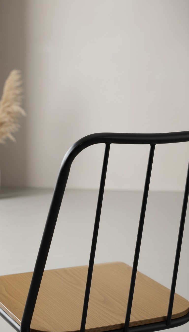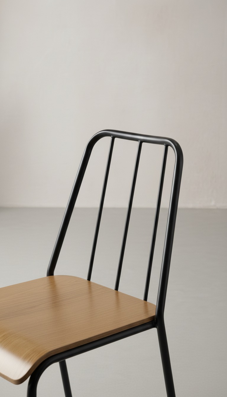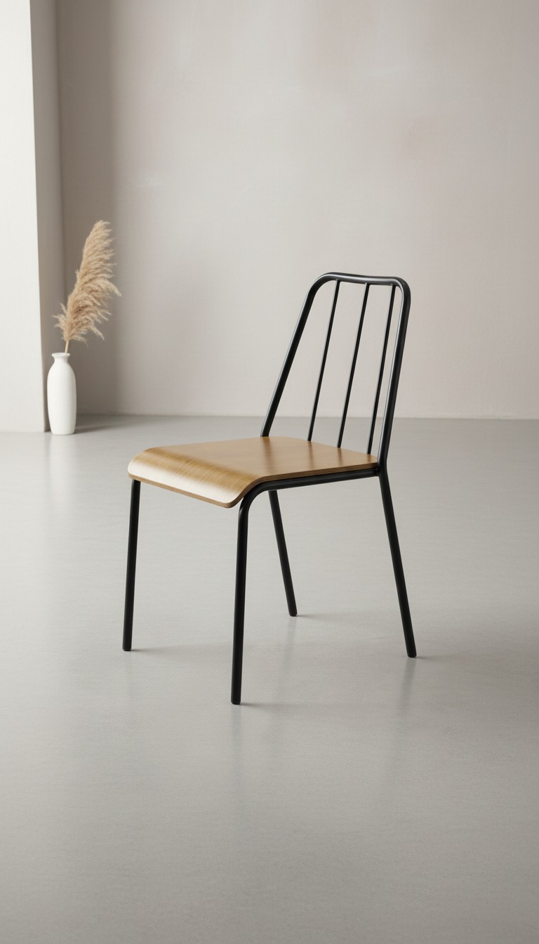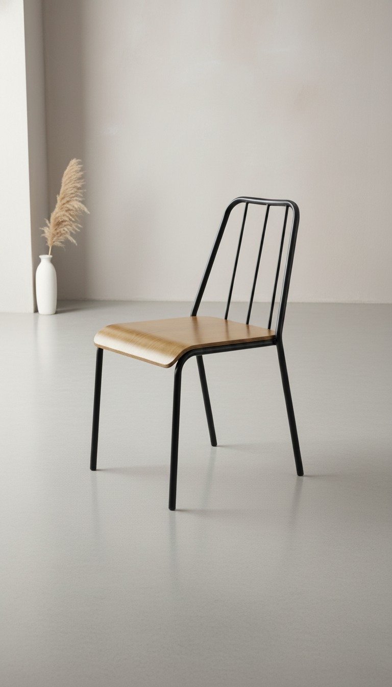 Minimalist ve dayanıklı tasarımıyla dikkat çeken bu sandalye, sağlam metal iskelet yapısı ve ergonomik ahşap oturma alanı ile hem estetik hem de uzun ömürlü kullanım sunar. Modern mutfaklar, kafeler ve çalışma alanları için ideal bir tercihtir.