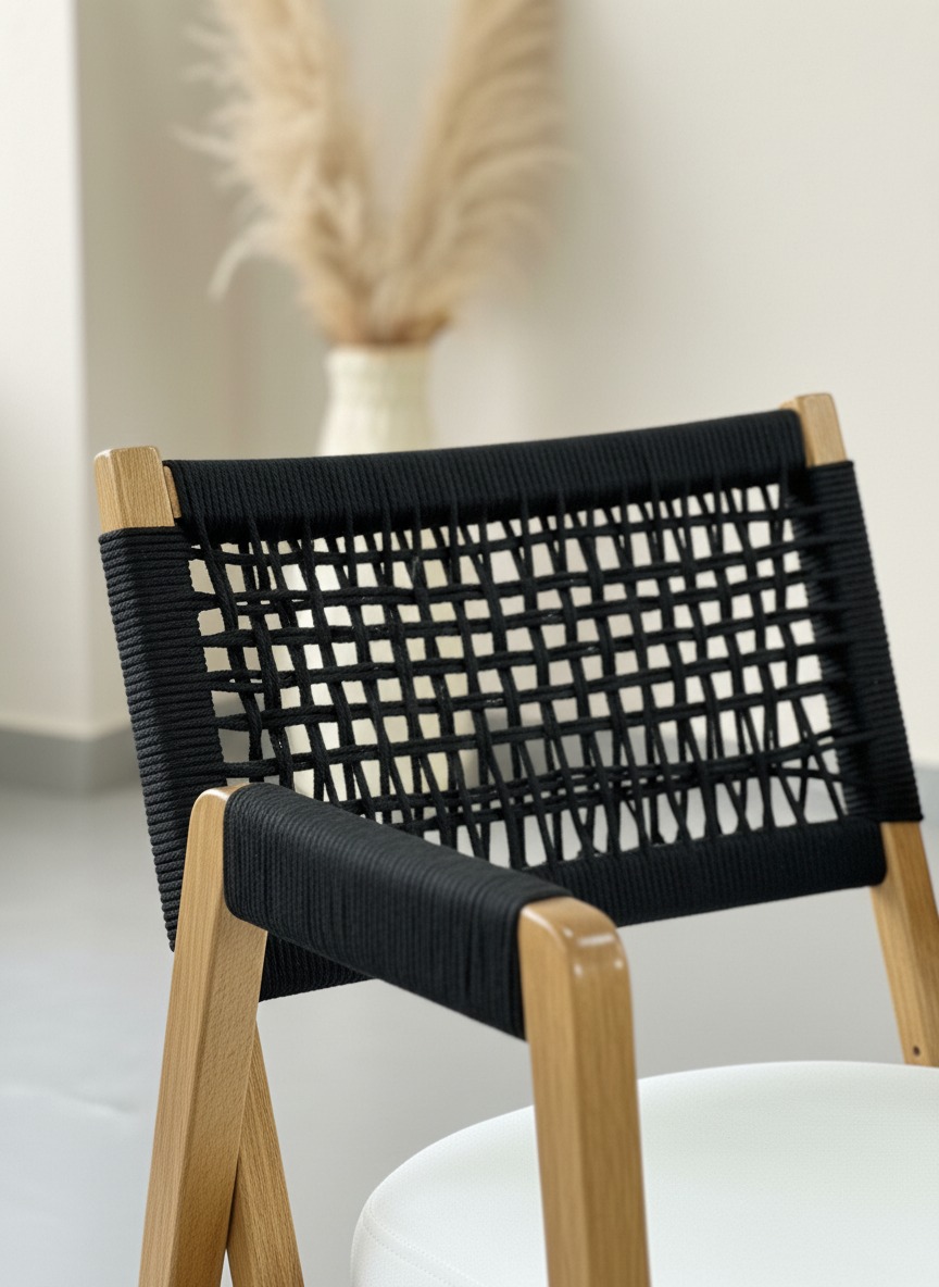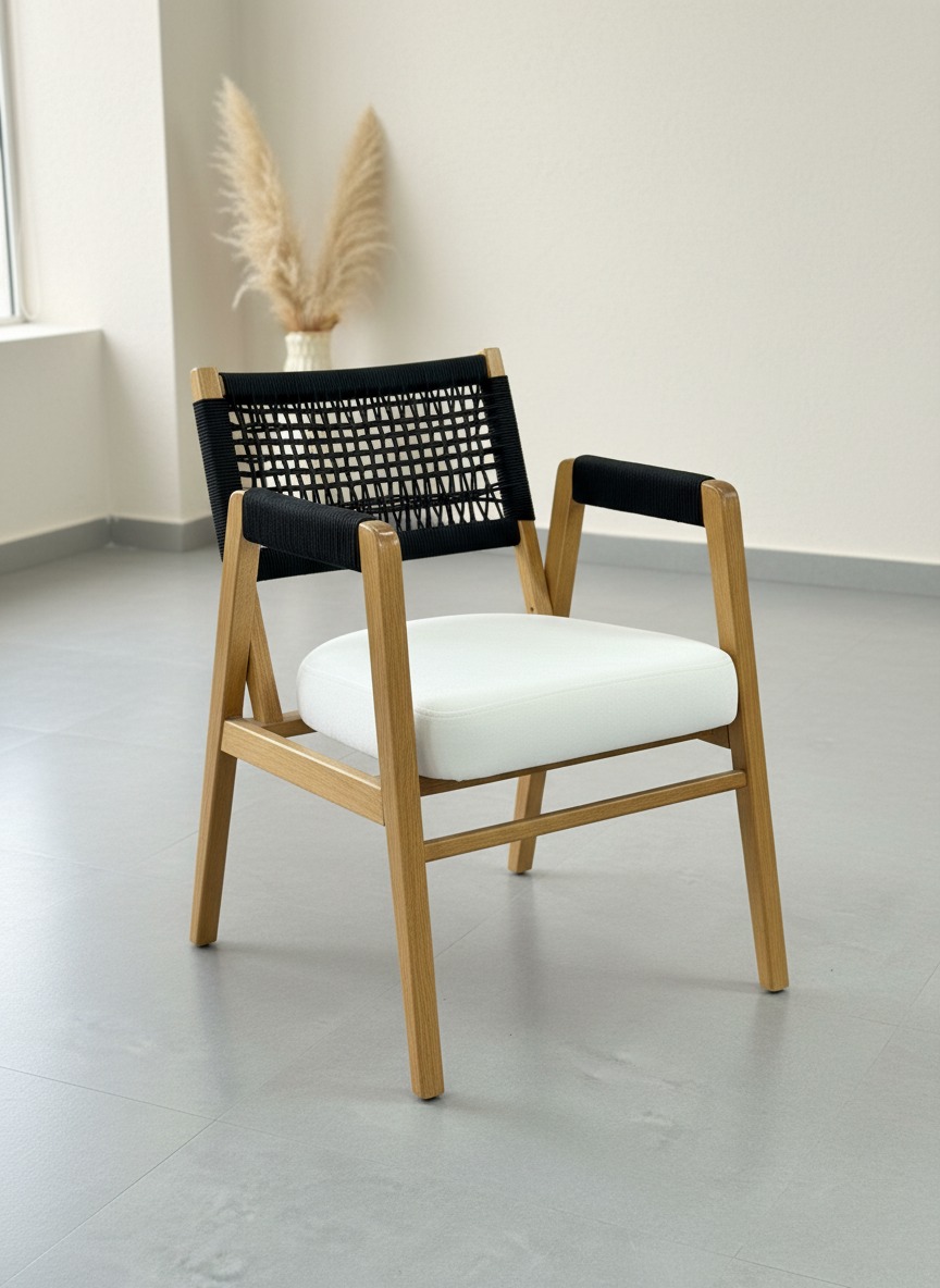 Doğal ahşap dokusunu el işçiliği ip örgü detaylarıyla birleştiren Lidya sandalye, ergonomik yapısı ve konforlu oturma alanıyla hem ev hem de ticari mekanlar için ideal bir tercihtir. Modern ve minimalist tasarımıyla her türlü dekorasyon stiline uyum sağlar.