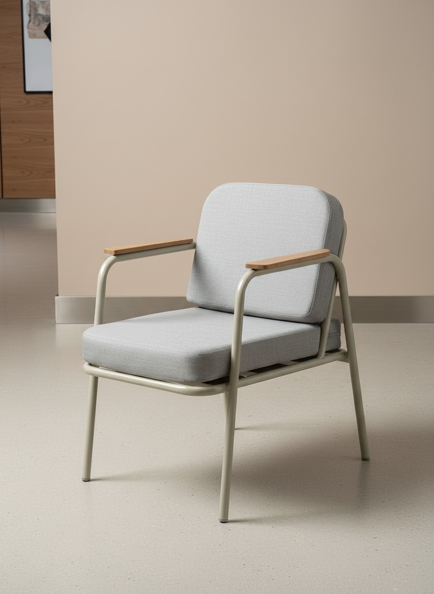 Ergonomik tasarımı ve dayanıklı metal gövdesiyle öne çıkan bu koltuk, ahşap kolçak detaylarıyla modern bir estetik sunar. Hem ev hem de ofis kullanımına uygun olan bu tasarım, konforlu minder yapısı sayesinde uzun süreli oturumlarda bile rahatlık sağlar. Minimalist hatları ile her türlü dekorasyon stiline uyum sağlar.