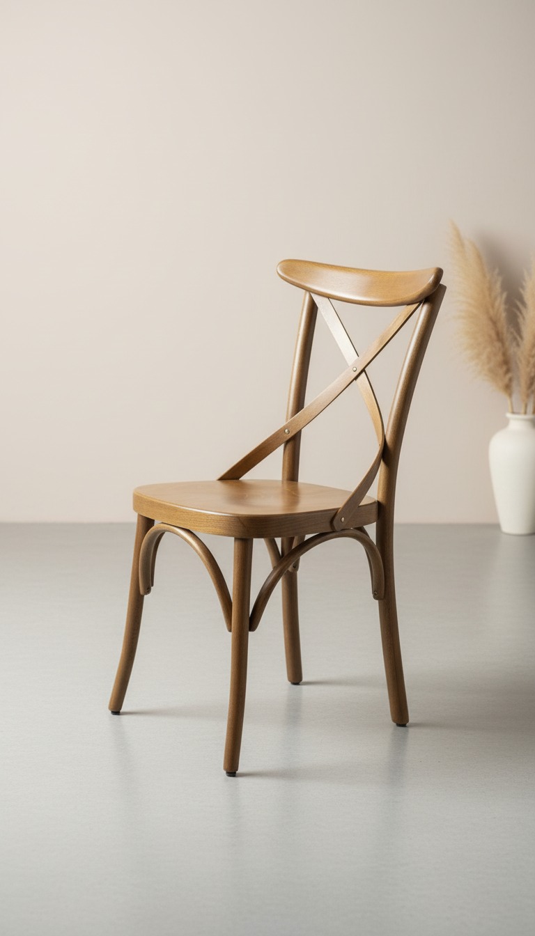 Zarif ve dayanıklı yapısıyla öne çıkan Tonet tarzı çapraz sırtlı ahşap sandalye, hem ev hem de profesyonel işletmeler için zamansız bir seçenektir. Masif ahşap gövdesi, kavisli ayak detayları ve ergonomik sırt desteği ile hem konforu hem de rustik estetiği bir araya getirir.