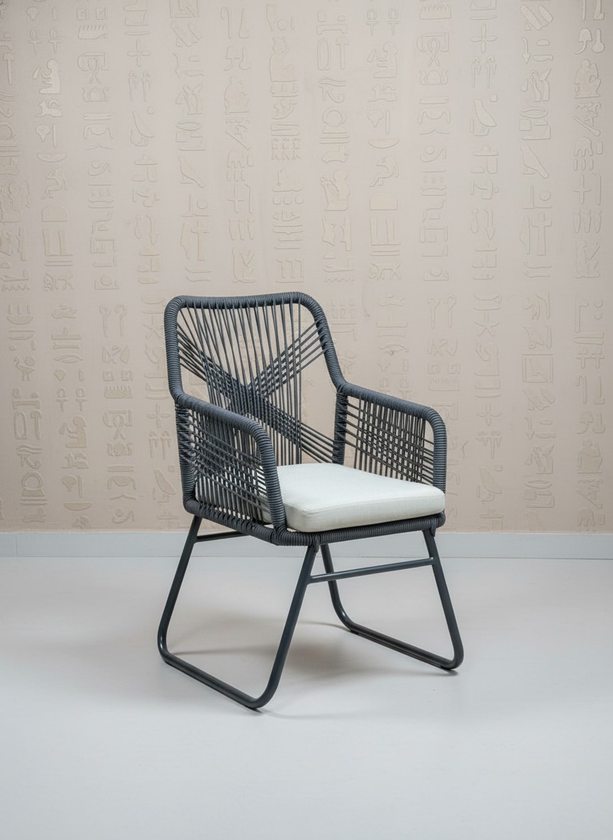 Dayanıklı metal iskelet üzerine estetik ip örgü detaylarıyla tasarlanmış, hem iç hem dış mekan kullanımına uygun modern sandalye. Ergonomik yapısı ve konforlu minderi ile balkon, bahçe veya kafe alanları için idealdir. Şık tasarımıyla dekorasyonunuza sofistike bir dokunuş katar.