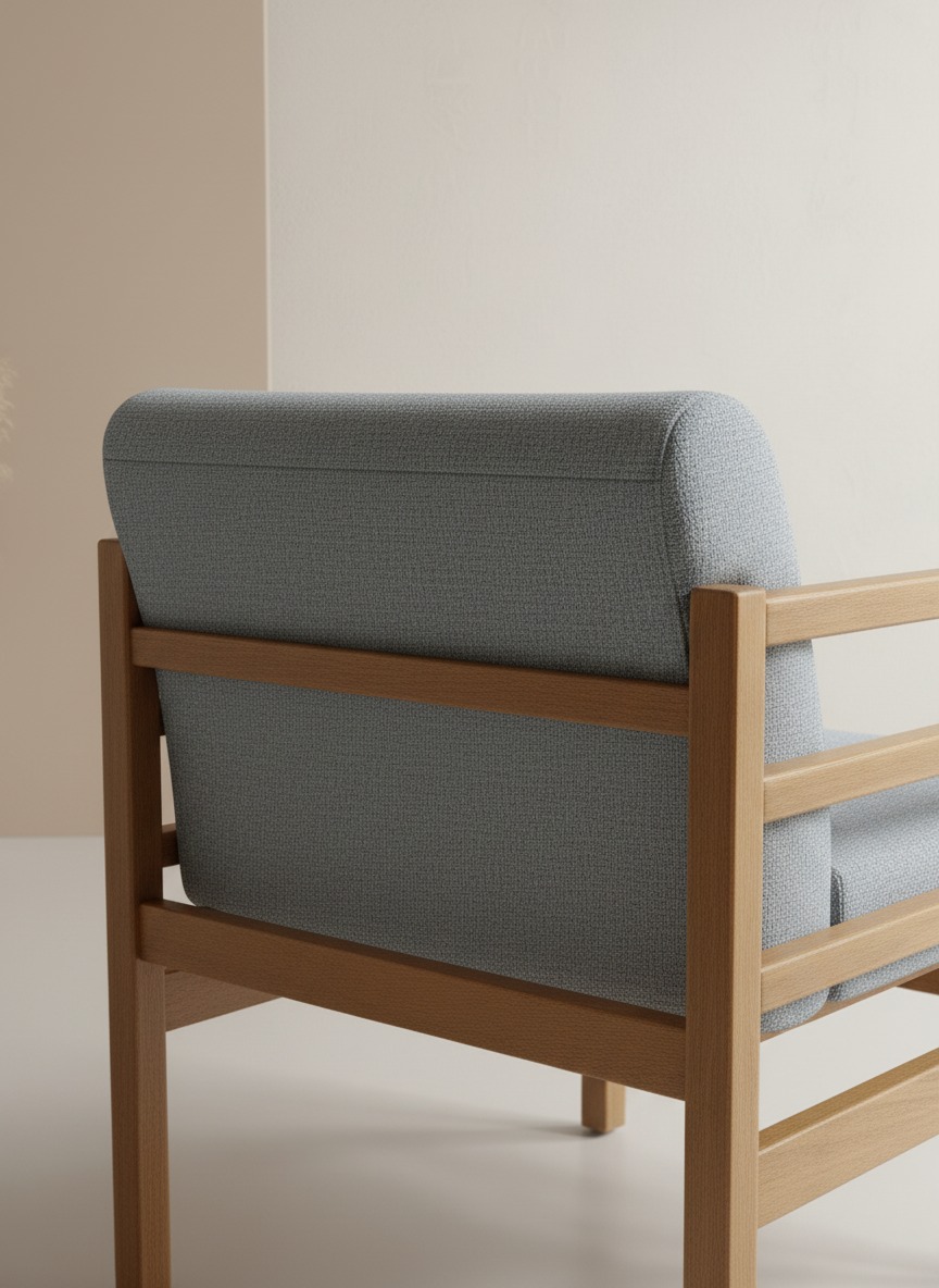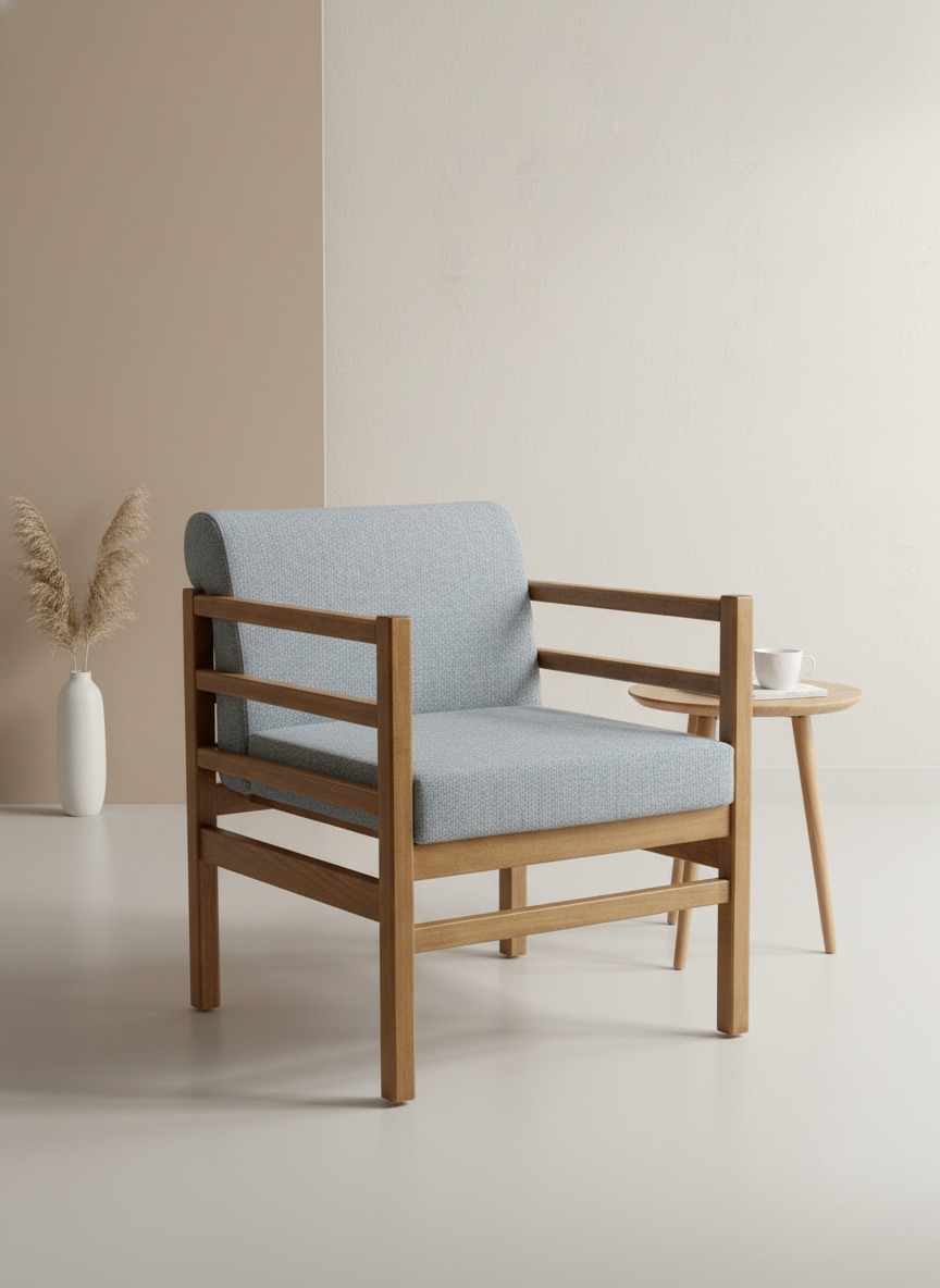 Masif ahşap iskelet yapısı ve ergonomik tasarımıyla hem estetik hem de dayanıklılığı bir arada sunan bu berjer, modern yaşam alanlarına sıcak bir dokunuş katar. Rahat minder yapısı ve zamansız tasarımıyla ev, ofis veya kafe projeleri için ideal bir oturma çözümüdür.