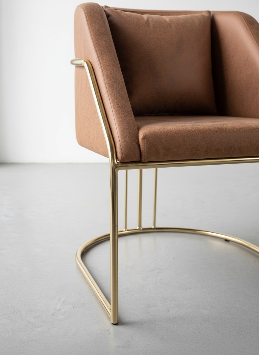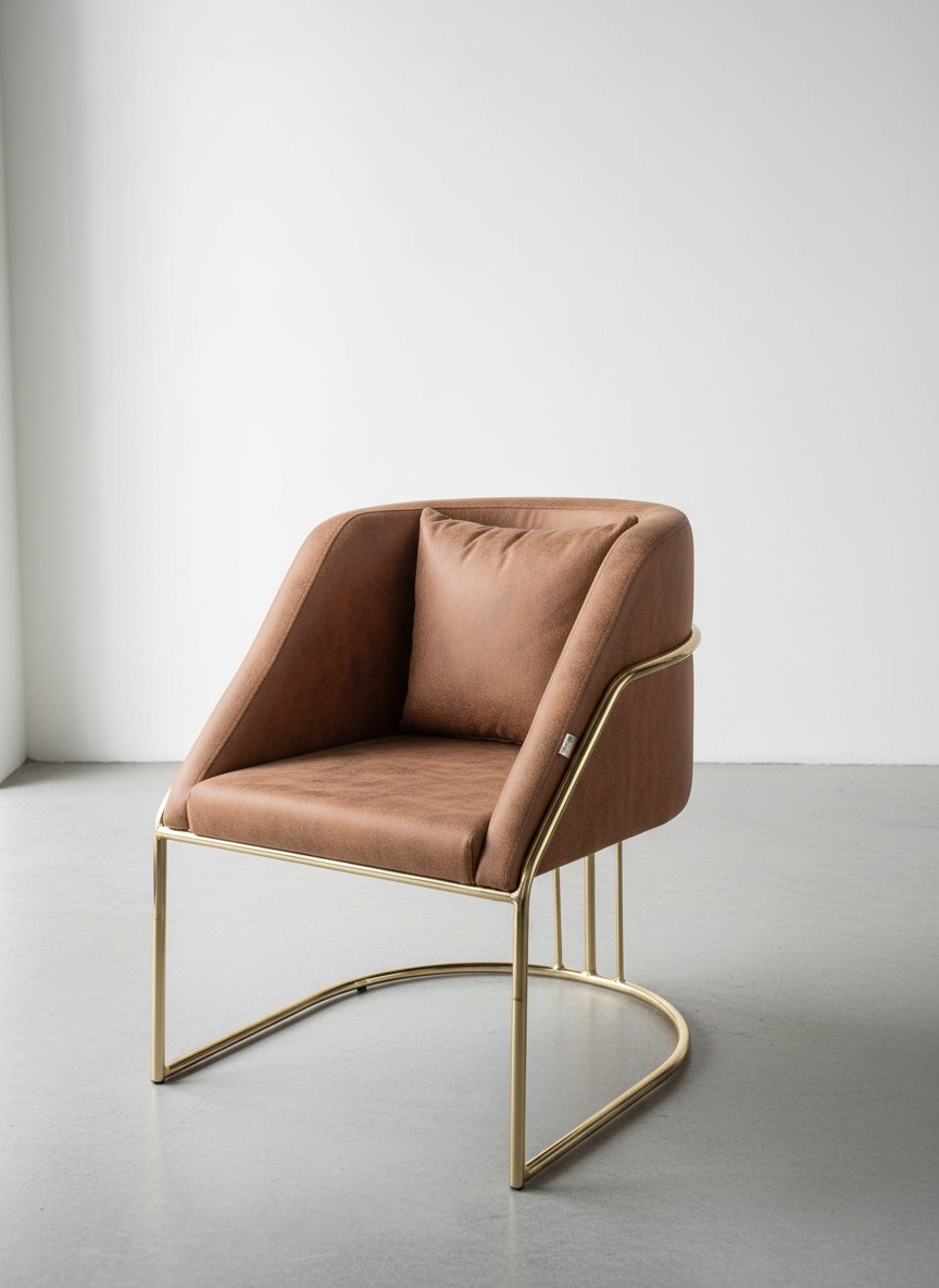 Modern ve estetik bir tasarıma sahip olan bu koltuk, kavisli dayanıklı metal iskeleti ve ergonomik minder yapısı ile hem ev hem de ticari mekanlar için ideal bir kullanım sunar. Sırt desteği sağlayan ilave yastığı ve geniş oturma alanı ile konforu ön planda tutarken, zarif metal ayak detaylarıyla mekanınıza sofistike bir hava katar.