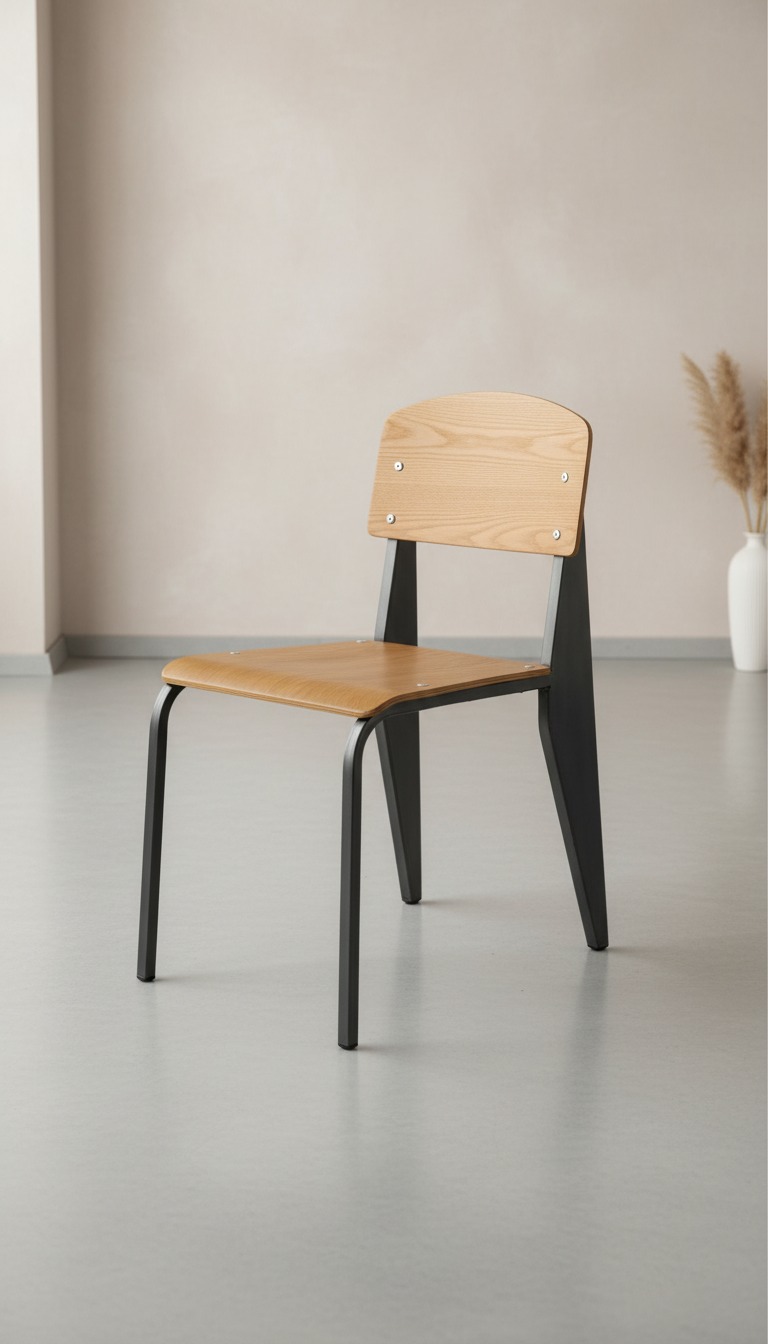 Sağlam metal konstrüksiyonu ve ergonomik ahşap arkalığı ile dikkat çeken bu sandalye, endüstriyel tasarımın en iyi örneklerinden biridir. Kafe, restoran, ofis ve ev kullanımına uygun dayanıklı bir yapıya sahiptir.