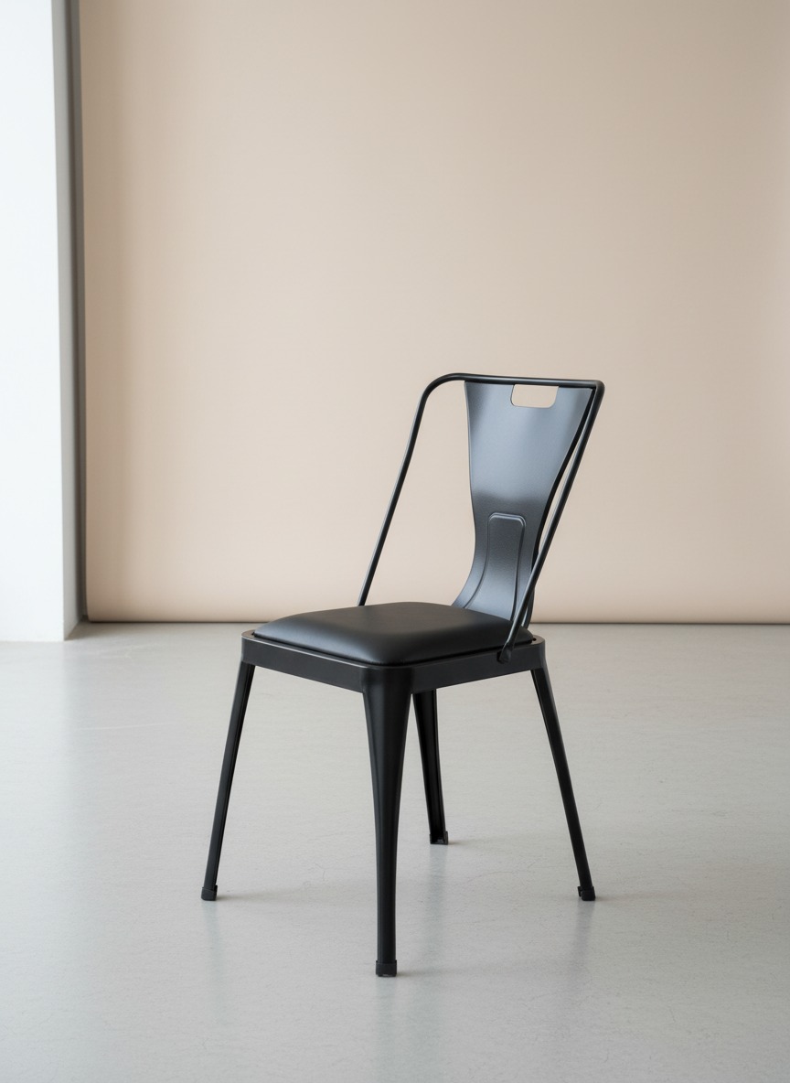 Modern ve endüstriyel çizgileri bir araya getiren bu metal sandalye, dayanıklı yapısı ve ergonomik sırt desteği ile öne çıkar. Yumuşak minderli oturma alanı konforlu bir kullanım sunarken, sağlam metal iskeleti uzun ömürlü kullanım vaat eder. Cafe, restoran veya modern ev dekorasyonları için mükemmel bir tamamlayıcıdır.