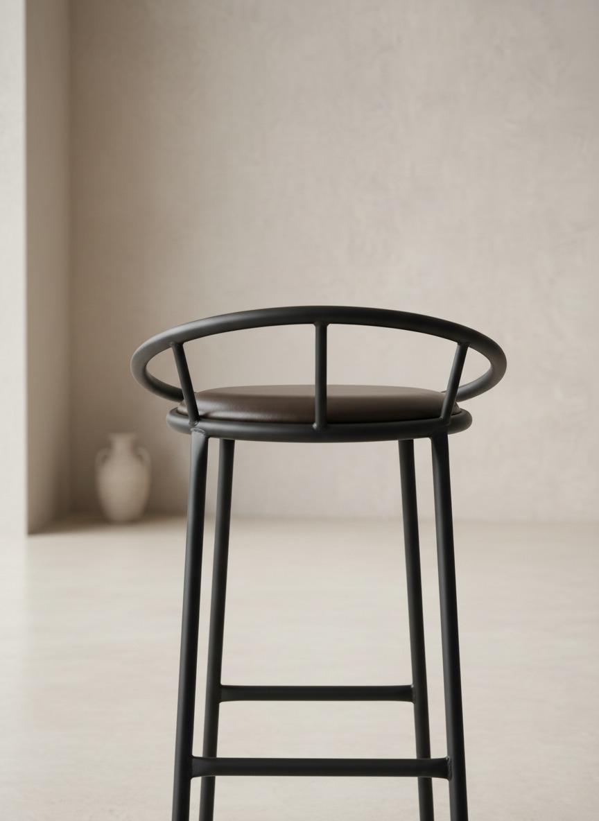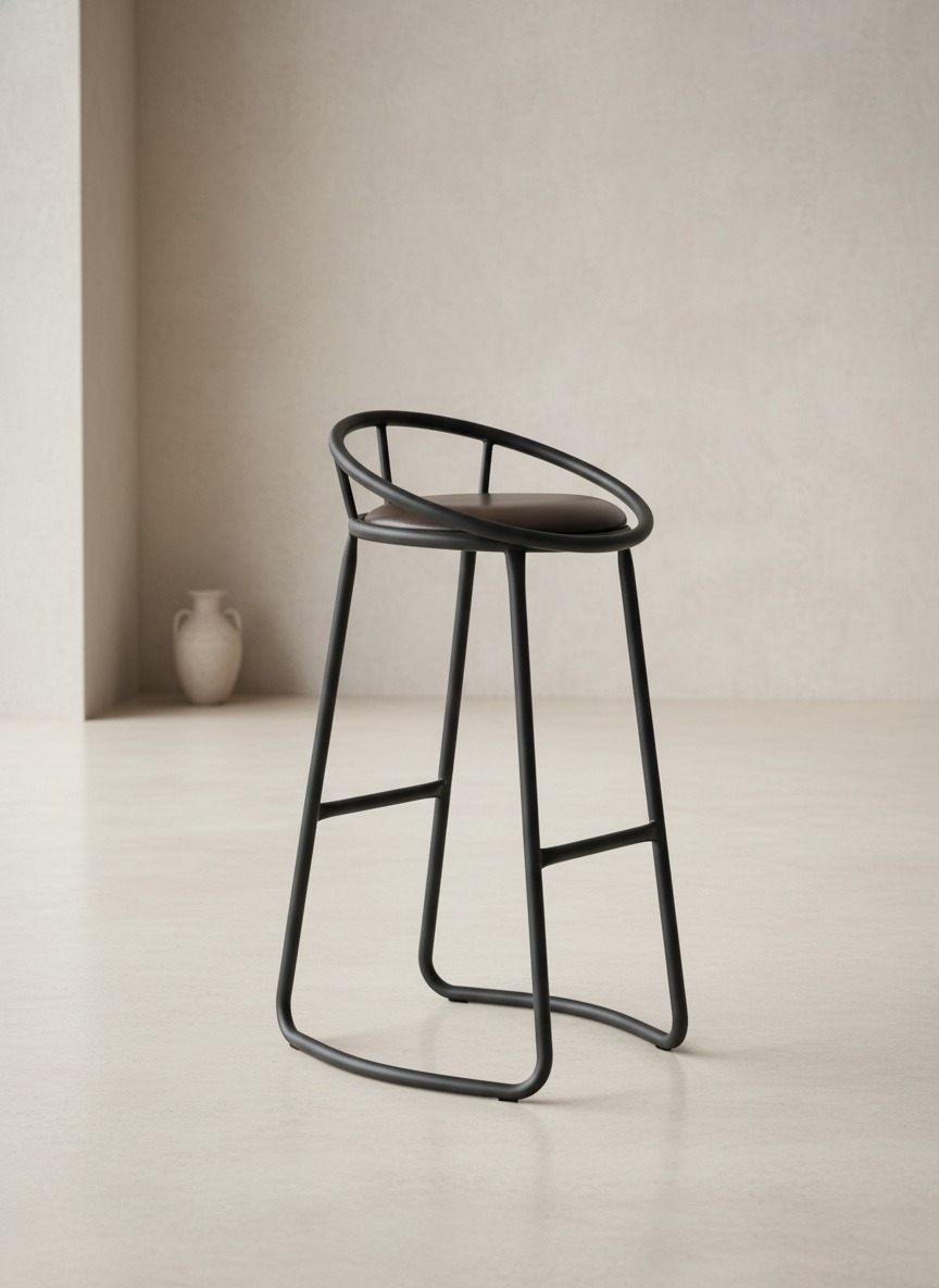Zarif halka sırt detayı ve sağlam metal gövdesi ile dikkat çeken bu bar taburesi, mekanlarınıza modern ve endüstriyel bir hava katar. Ergonomik ayak koyma barı ve konforlu oturma alanı ile hem ev içi ada mutfaklarda hem de ticari mekanlarda kullanım için idealdir.