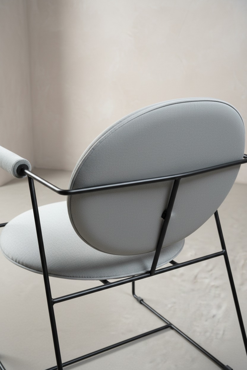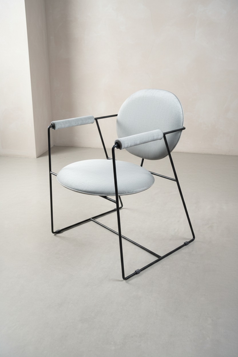 Zarif ve modern bir tasarıma sahip olan bu sandalye, ince siyah metal iskeleti ve dairesel formdaki konforlu minderleri ile dikkat çeker. Hem estetik hem de ergonomik yapısı sayesinde salonlardan çalışma odalarına, kafe ve restoranlardan ofislere kadar geniş bir kullanım alanı sunar. Kol kısımlarındaki döşeme detayları ekstra konfor sağlarken, minimalist yapısı mekanda ferahlık hissi yaratır.