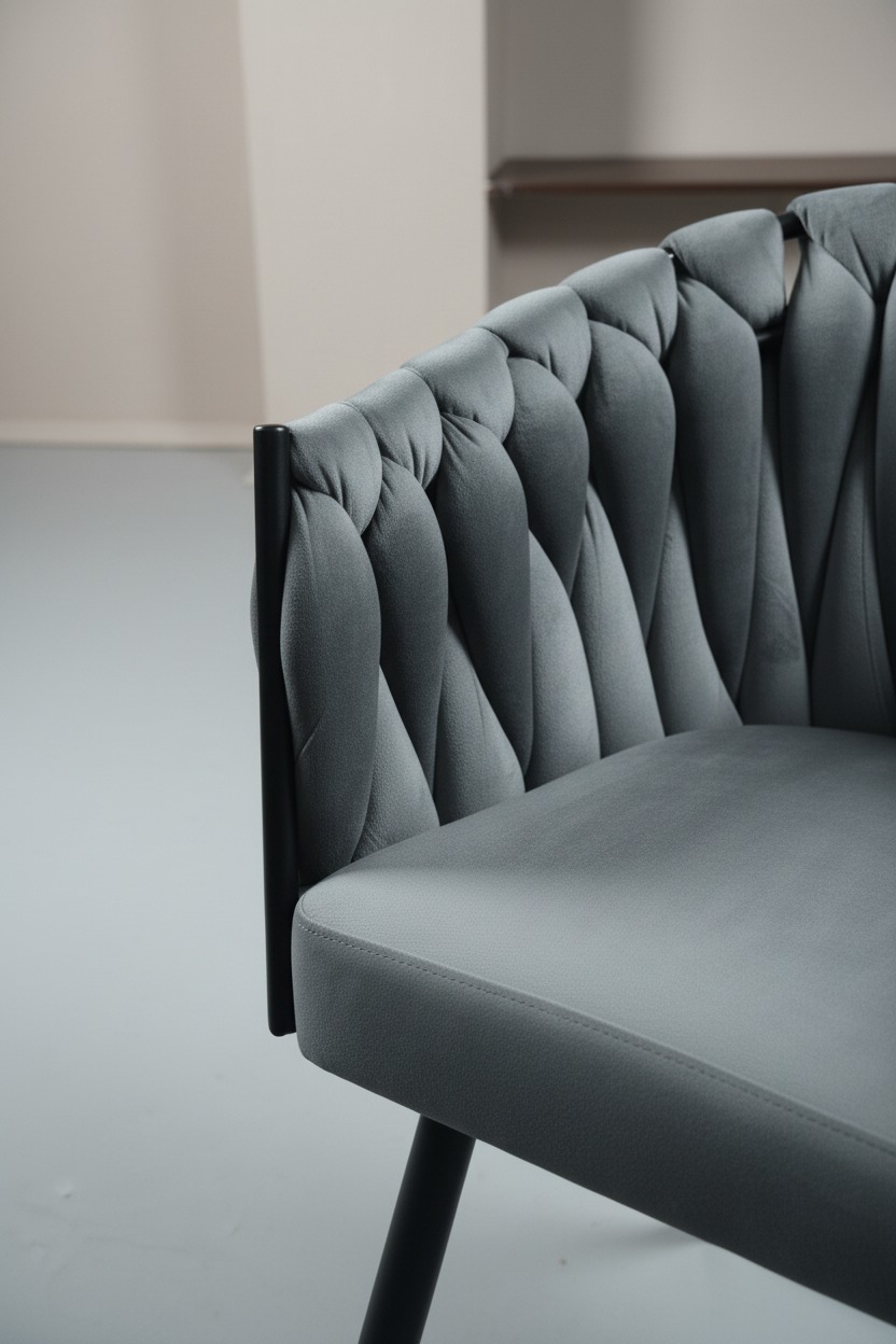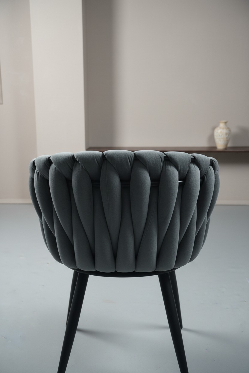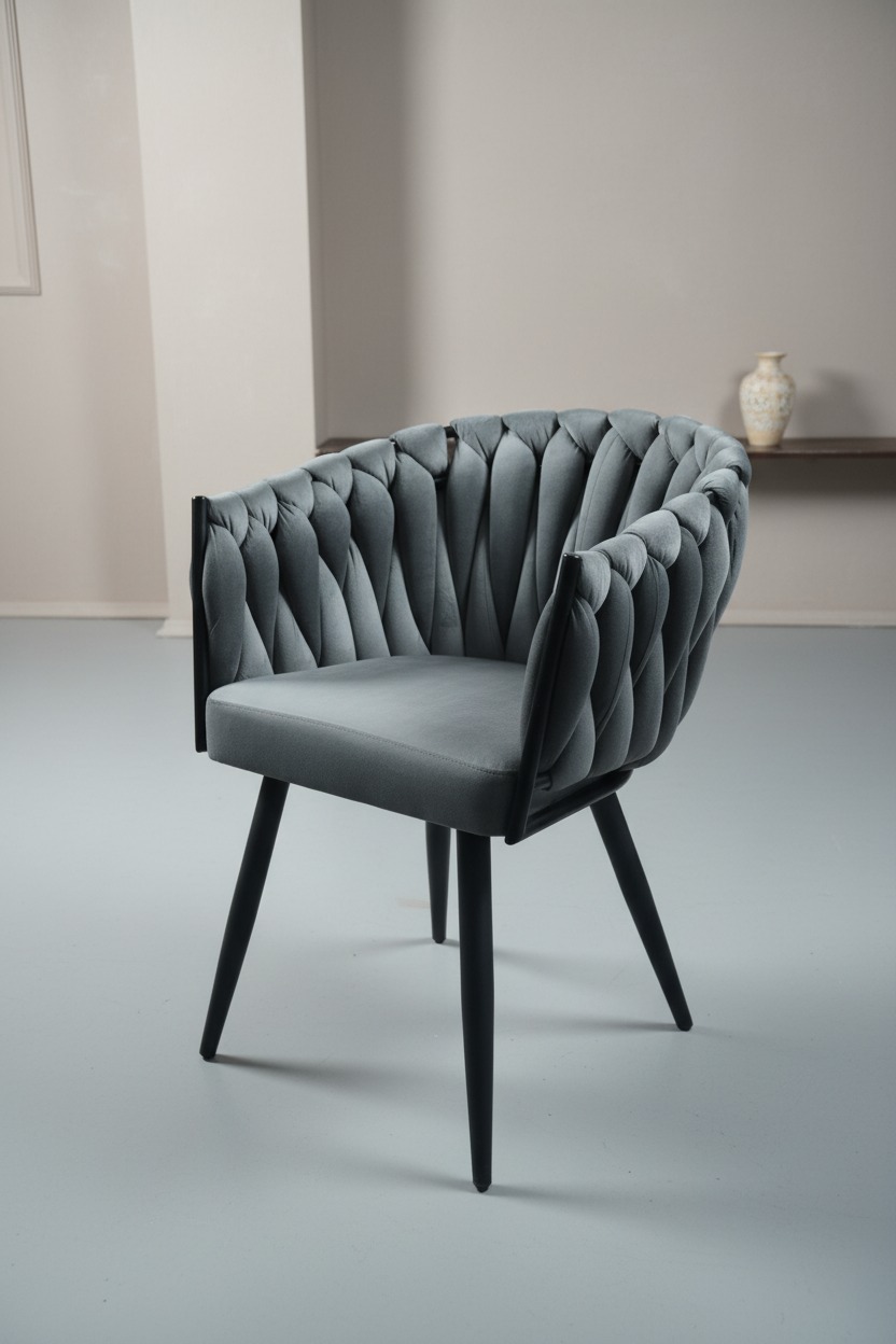 Özgün örgü tasarımıyla dikkat çeken bu modern sandalye, estetik ve konforu bir araya getiriyor. Dayanıklı siyah metal ayakları ve ergonomik gövde yapısı ile hem yemek odaları hem de restoran/kafe projeleri için idealdir. Yumuşak dokusu ve şık görünümüyle mekanlarınıza sofistike bir hava katar.