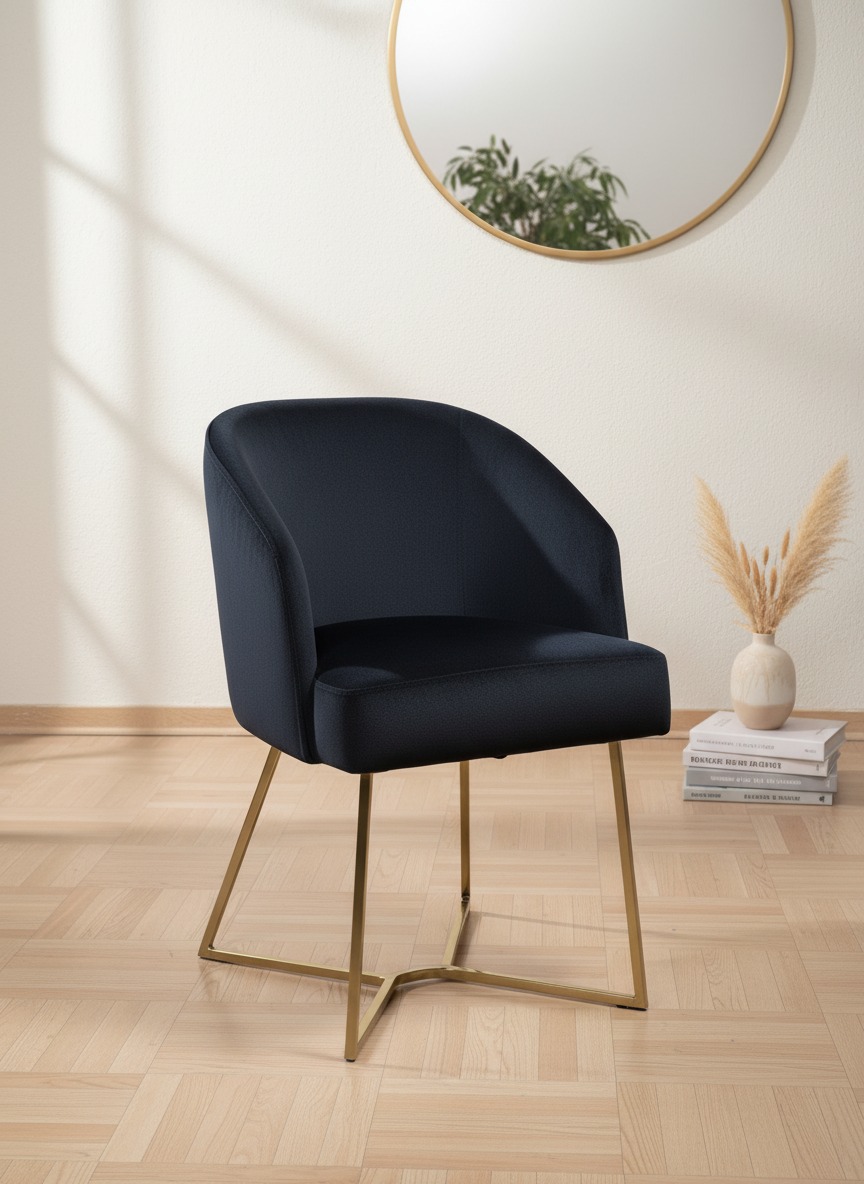Ergonomik kavisli sırt yapısı ve geometrik formdaki sağlam metal ayakları ile hem konforu hem de estetik görünümü bir arada sunar. Hem ev kullanımı hem de otel, kafe gibi işletmeler için lüks bir atmosfer yaratır.