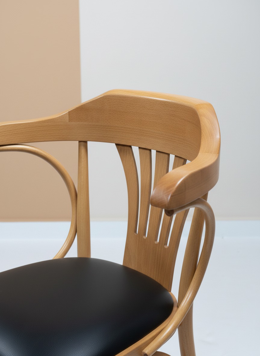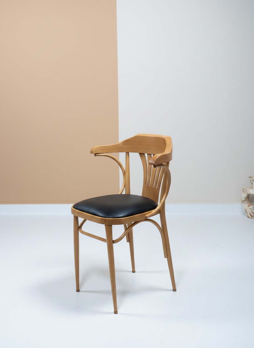 Zarif kavisli metal gövdesi ve doğal ahşap sırt desteğiyle öne çıkan bu sandalye, modern ve endüstriyel tarzı mükemmel bir şekilde harmanlar. Yumuşak dolgulu oturma alanı uzun süreli konfor sağlarken, sağlam yapısı otel ve restoran gibi yoğun kullanım alanları için dayanıklılık sunar. Ergonomik tasarımı ile hem estetik hem de rahatlık arayanlar için ideal bir seçimdir.