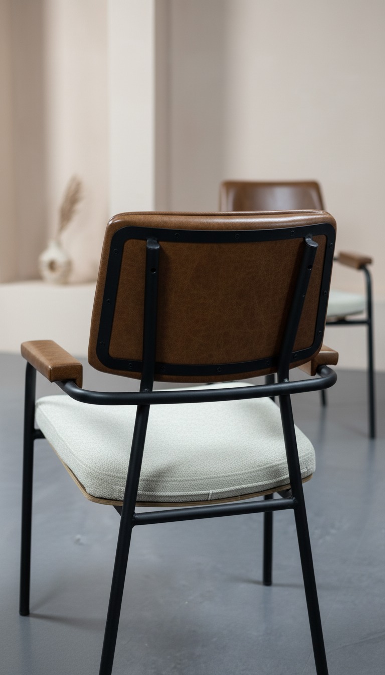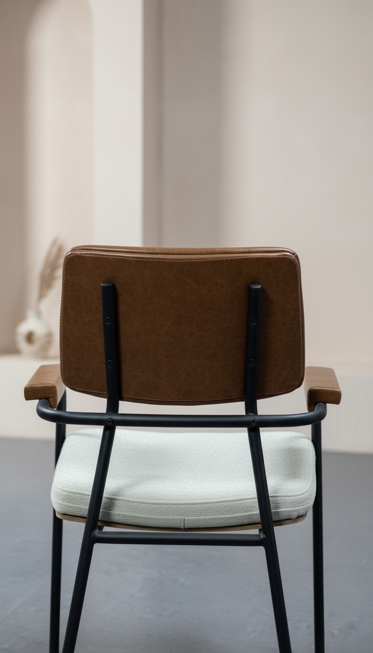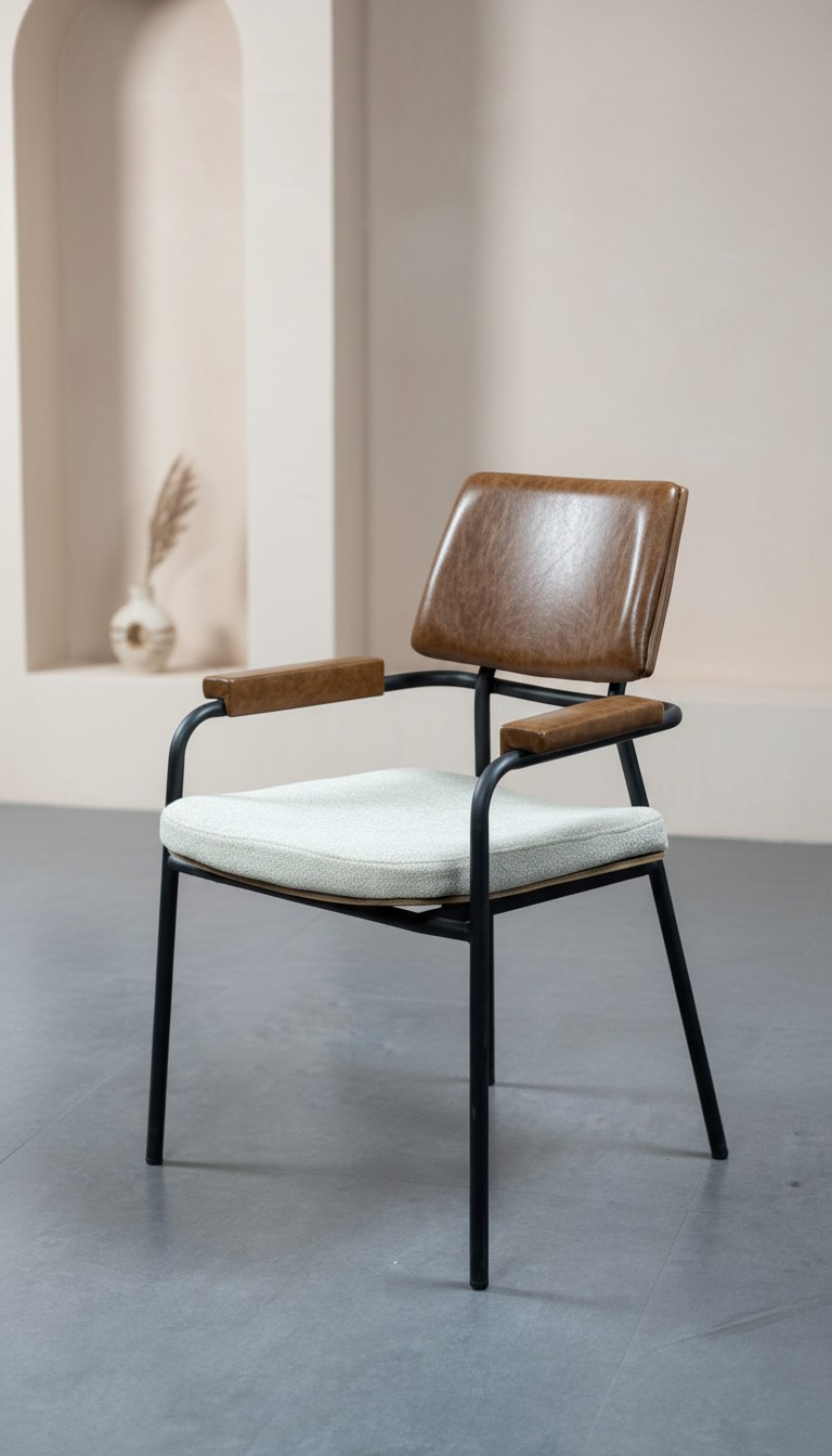 Endüstriyel tasarımın modern konforla birleştiği bu sandalye, sağlam siyah metal iskeleti ve ergonomik yapısıyla dikkat çeker. Hem sırt desteği hem de kolçaklardaki yumuşak dokunuşlar, uzun süreli oturumlarda bile üst düzey konfor sunar. Şık tasarımıyla hem ev dekorasyonunda hem de kafe, restoran gibi ticari mekanlarda kullanım için idealdir.