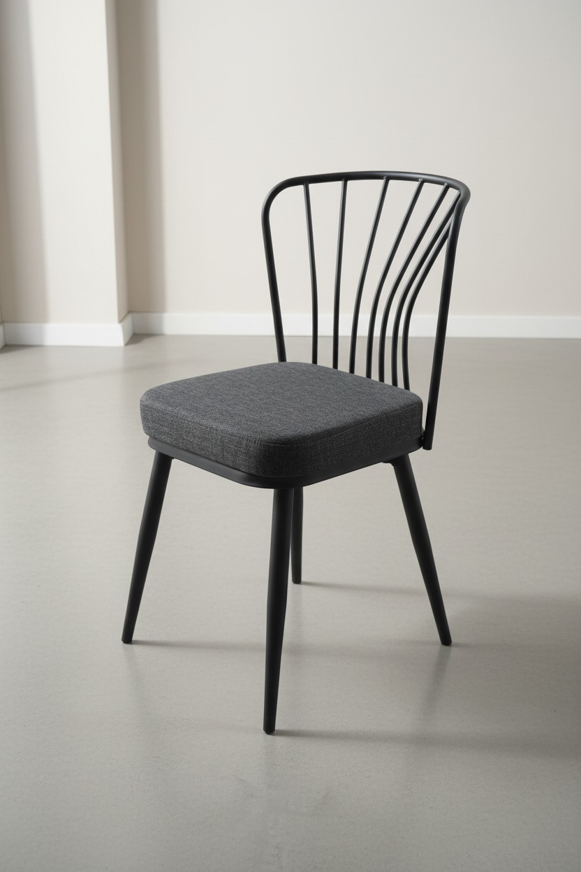 Modern ve minimalist tasarımıyla öne çıkan bu metal sandalye, dayanıklı gövdesi ve ergonomik sırt yapısı ile hem konforlu hem de şık bir kullanım sunar. İnce metal çubuk detaylı sırt tasarımı ve sağlam ayak yapısı ile evlerde, kafelerde veya ofislerde kullanım için idealdir.