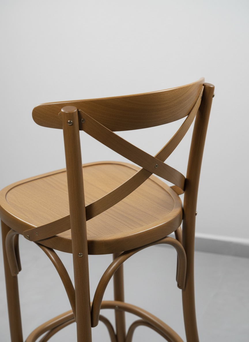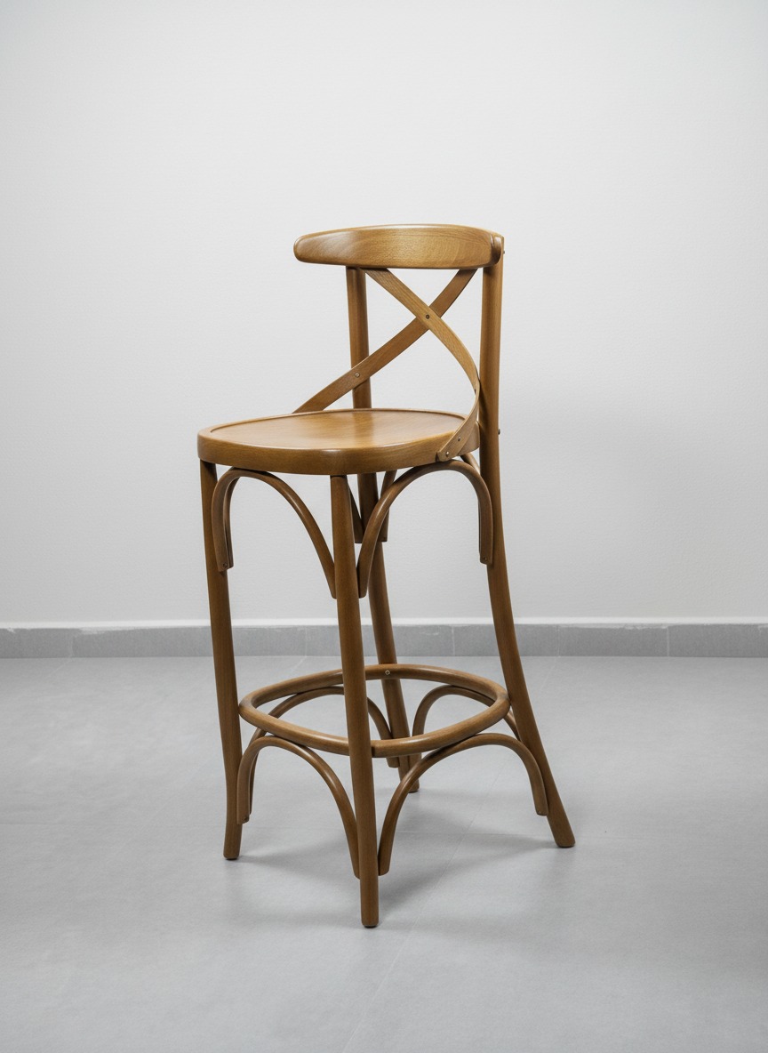 Klasik Thonet tarzını modern bir dokunuşla birleştiren bu ahşap bar sandalyesi, çapraz sırt detayı ve kavisli gövde yapısıyla hem estetik hem de dayanıklılık sunar. Mutfak adaları, barlar ve kafe işletmeleri için ideal bir oturma çözümüdür.