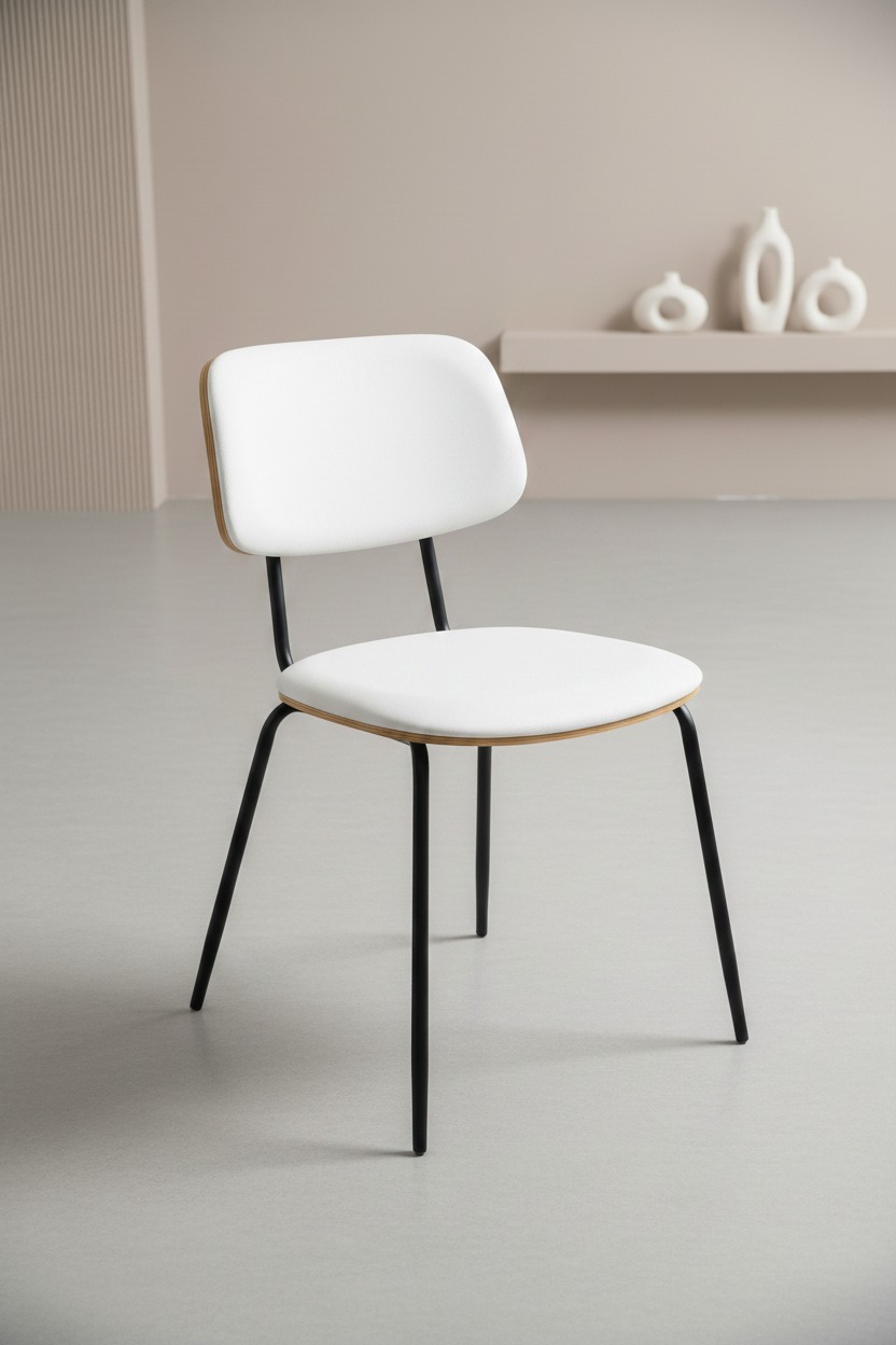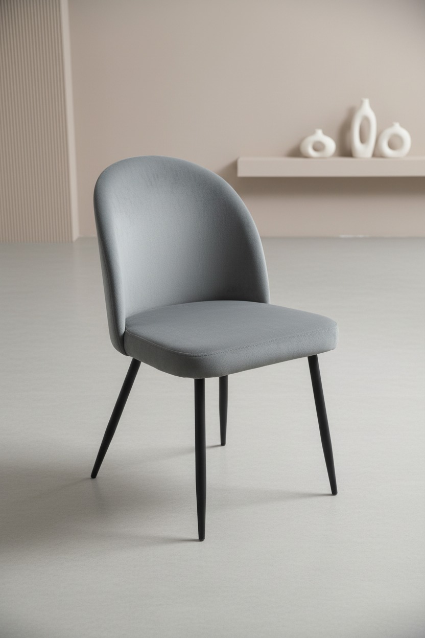 Ergonomik kavisli sırt yapısı ve dayanıklı ince metal ayakları ile modern bir görünüm sunan bu sandalye, hem ev hem de ticari mekanlar için idealdir. Minimalist tasarımıyla farklı dekorasyon stillerine kolayca uyum sağlar.