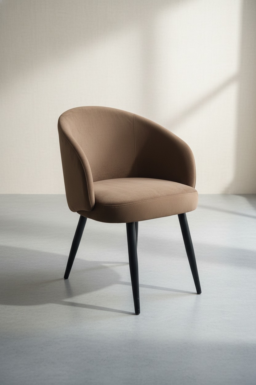 Ergonomik kavisli sırt yapısı ve modern tasarımıyla öne çıkan bu sandalye, hem estetik hem de konforu bir araya getiriyor. Dayanıklı metal ayakları ve yumuşak dokulu döşemesi ile yemek odaları, kafeler ve çalışma alanları için mükemmel bir tercihtir.