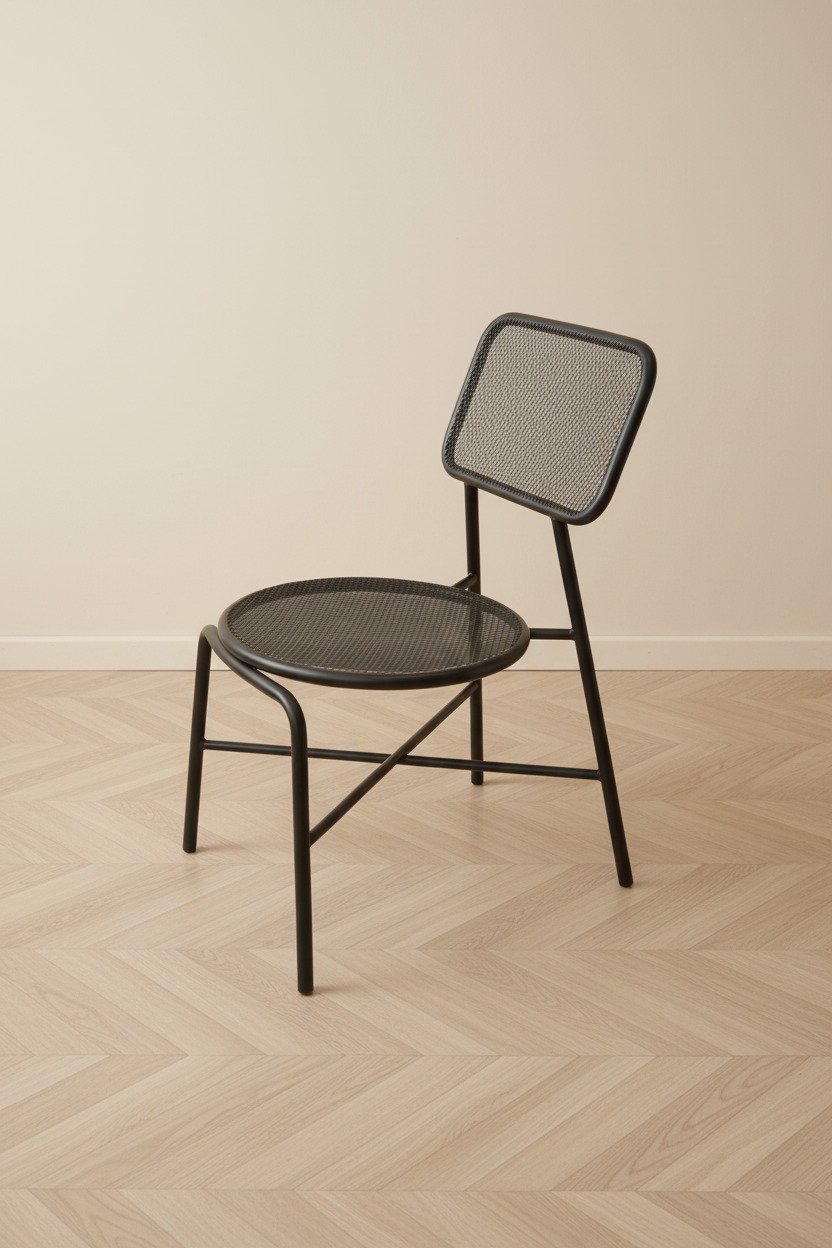 Dayanıklı metal gövdesi ve estetik delikli file dokusuyla hem iç hem dış mekan kullanımına uygun, modern ve endüstriyel tarza sahip şık bir sandalye. Minimalist hatları ve sağlam yapısı sayesinde uzun ömürlü bir kullanım sunar.
