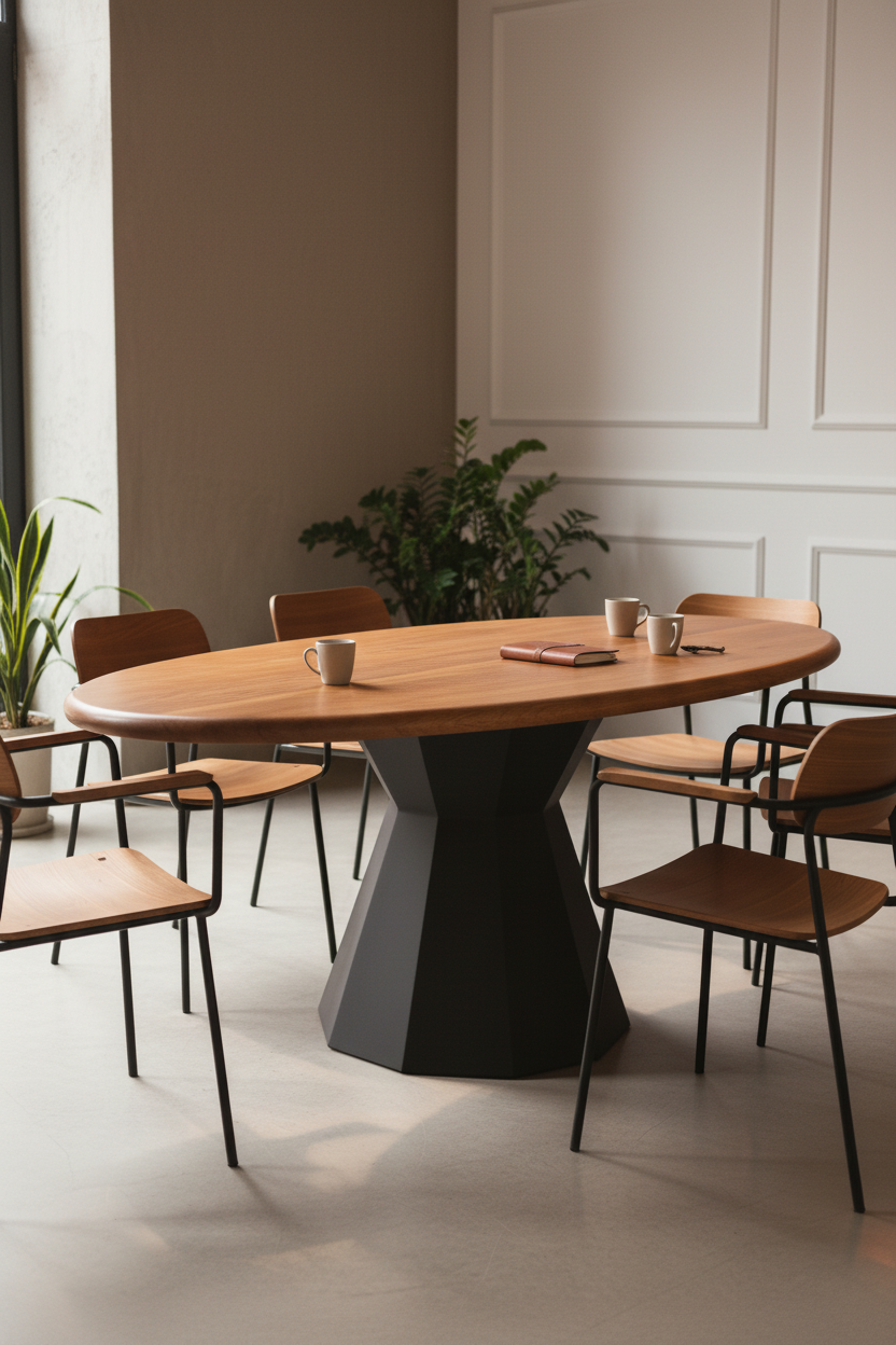 Müşteri akışının yoğun olduğu ticari mekanlar için tasarlanan Apex Gastronomi Masa Sistemi, işletmenizin premium algısını zirveye taşır. Doğal kenar bitişli, hijyen standartlarına uyumlu oval ahşap tablası, misafirleriniz için davetkar bir ambiyans yaratırken, en zorlu kullanıma dahi dayanıklılık sunar. Yenilikçi fasetli (çokgen) siyah kaide ayağı, optimum diz mesafesi sunarak sandalye yerleşimini kolaylaştırır ve sarsılmaz bir stabilite sağlar. Uzun ömürlü yapısı ve kolay temizlenebilir yüzey bitişi sayesinde operasyonel maliyetlerinizi düşürerek hızlı bir yatırım getirisi (ROI) sağlar. Mimari projelere ve yüksek beklentili satınalma standartlarına uygundur.