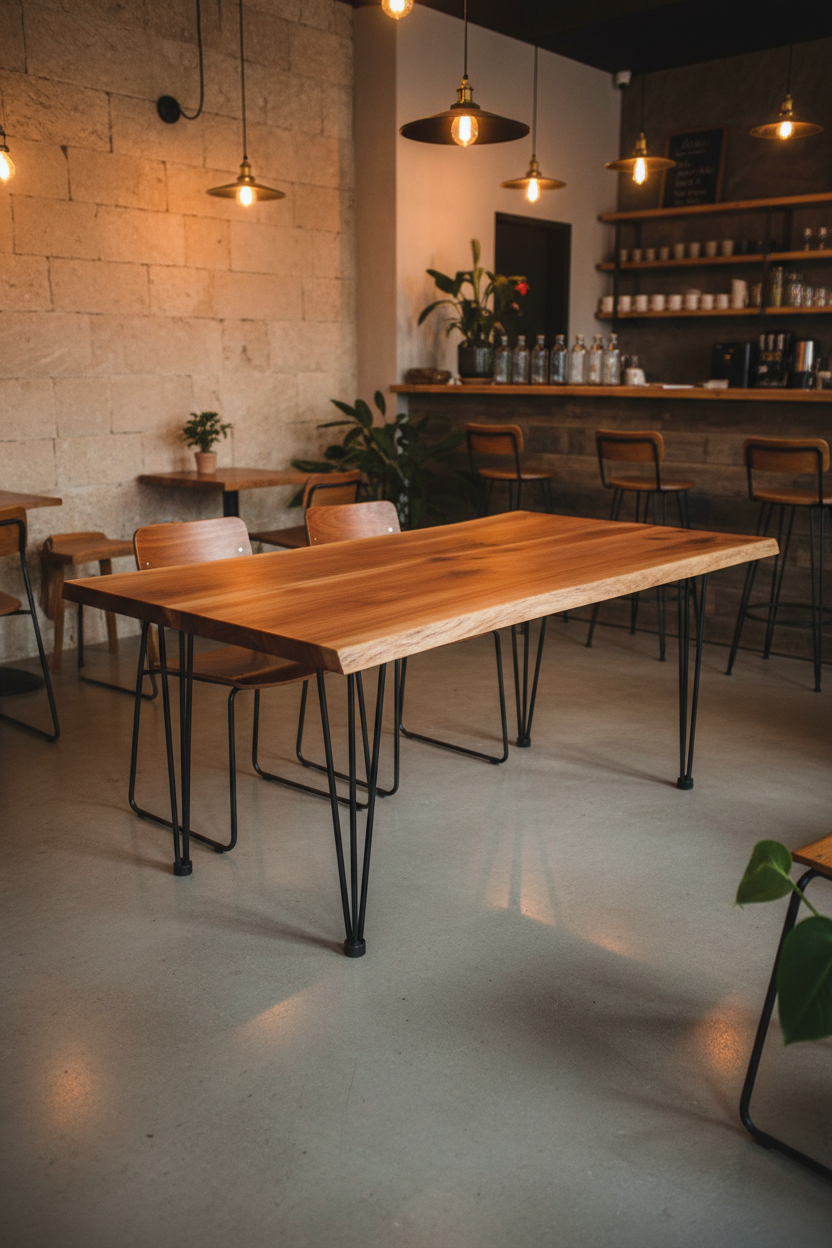 OTEL, KAFE & RESTORAN işletmeleri için tasarlanan Legacy Live Edge Masa, estetik ve operasyonel dayanıklılığı bir araya getiriyor. Yoğun müşteri trafiği ve sürekli temizlik gerektiren ortamlar için özel olarak geliştirilen bu masif ahşap masa, çizilmelere ve sıvı temasına karşı maksimum direnç sunar. Eşsiz canlı kenar (live edge) tasarımı, misafirlerinize anında premium bir algı ve benzersiz bir deneyim sunarak mekanınızın marka değerini yükseltir. Zarif ancak çelik sağlamlığındaki Hairpin metal ayaklar, ürüne endüstriyel bir şıklık katarken, zeminde mükemmel denge sağlar. Legacy Masa, sadece bir mobilya değil, uzun vadede bakım maliyetlerini minimize eden ve müşteri memnuniyetini artıran stratejik bir yatırımdır. Mimari projeler ve satınalma süreçleriniz için kurumsal çözümlerimizle tanışın.