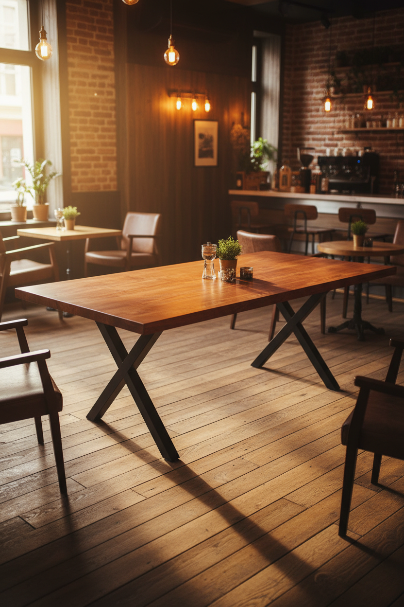 İşletmenizin Yatırımını Güvence Altına Alın: Gastronomi X Serisi. Yüksek trafik hacmine sahip otel, kafe ve restoran ortamları için tasarlanmış olan bu Endüstriyel Masif Servis Masası, estetikten ödün vermeden operasyonel dayanıklılık sunar. Doğal masif ahşap tablası, premium müşteri deneyimini garantilerken, özel yüzey işlemi sayesinde kolay temizlenebilir ve hijyen standartlarını korur. Mimari projelere ve toptan satınalma ihtiyaçlarına yönelik olarak güçlendirilmiş, mat siyah X metal ayak tasarımı ise stabiliteyi ve uzun ömürlülüğü maksimize eder. Yenileme döngülerinizi uzatarak yatırım getirisi (ROI) sağlayan bu masa, sadece bir mobilya değil, markanızın kalitesini yansıtan kalıcı bir varlıktır. Profesyonel projeleriniz için ideal, güvenilir ve kurumsal bir çözümdür.