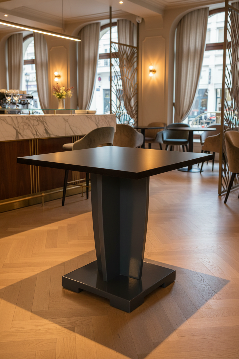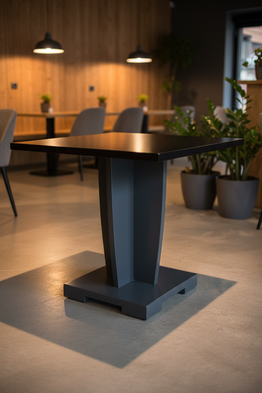 Mimarların ve işletme sahiplerinin estetik beklentilerini, operasyonel dayanıklılık gereksinimleriyle buluşturan Zenit Masa, mekanlarınız için akıllı bir yatırımdır. Parlak (Glossy) siyah bitişi sayesinde mekana anında bir premium algı ve derinlik katar, bu da müşteri deneyimini doğrudan yukarı taşır. Merkezî pilon ayak tasarımı, masa altı alanı maksimize ederek konforlu bir oturum düzeni sunar ve misafir sirkülasyonunu kolaylaştırır. Üst düzeyde seçilmiş, ticari kullanıma uygun malzemesi sayesinde yoğun trafiğe, dökülmelere ve çizilmeye karşı uzun ömürlülük garantisi verir. Yüzeyin kolay temizlenebilir yapısı, operasyonel temizlik süresini minimize ederek işletme verimliliğinize katkıda bulunur. Uzun vadede düşük bakım maliyeti (TCO) sunarak, yatırımınızın geri dönüşünü hızlandırır. Kafe, restoran ve butik otel projeleriniz için ideal, sürdürülebilir bir çözüm.