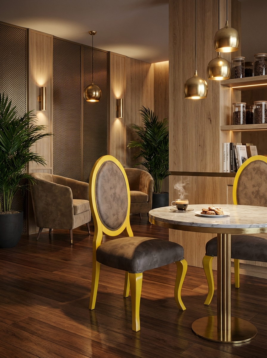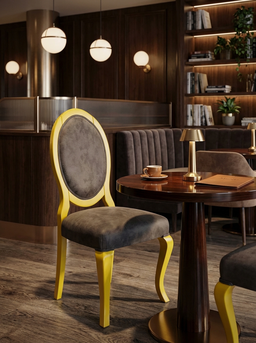İşletmenizin ambiyansını ve yatırım getirisini (ROI) maksimize etmek üzere tasarlanmıştır. Regent Midas Vurgu Sandalyesi, klasik Louis X. stilinin zamana meydan okuyan zarafetini, yoğun ticari kullanıma uygun güçlendirilmiş yapı ile birleştirir. Canlı parlak sarı lake kaplaması, butik restoranlar, lüks kafeler ve otel lobilerinde anında lüks ve göz alıcı bir premium algı yaratır. Satın alma müdürleri ve mimarlar için en kritik unsur olan uzun ömürlülük göz önünde bulundurularak üretilmiştir. Oturma ve sırt bölgelerinde kullanılan yüksek yoğunluklu döşeme ve kolay temizlenebilir, yoğun kullanıma dayanıklı koyu tonlu kumaş (süet/kadife görünümlü), hem müşteri konforunu garanti eder hem de işletme maliyetlerinizi minimize eder. Marka kimliğinizi kalıcı olarak güçlendirecek, bakım gereksinimi düşük, yüksek etkili bir mobilya çözümüdür.