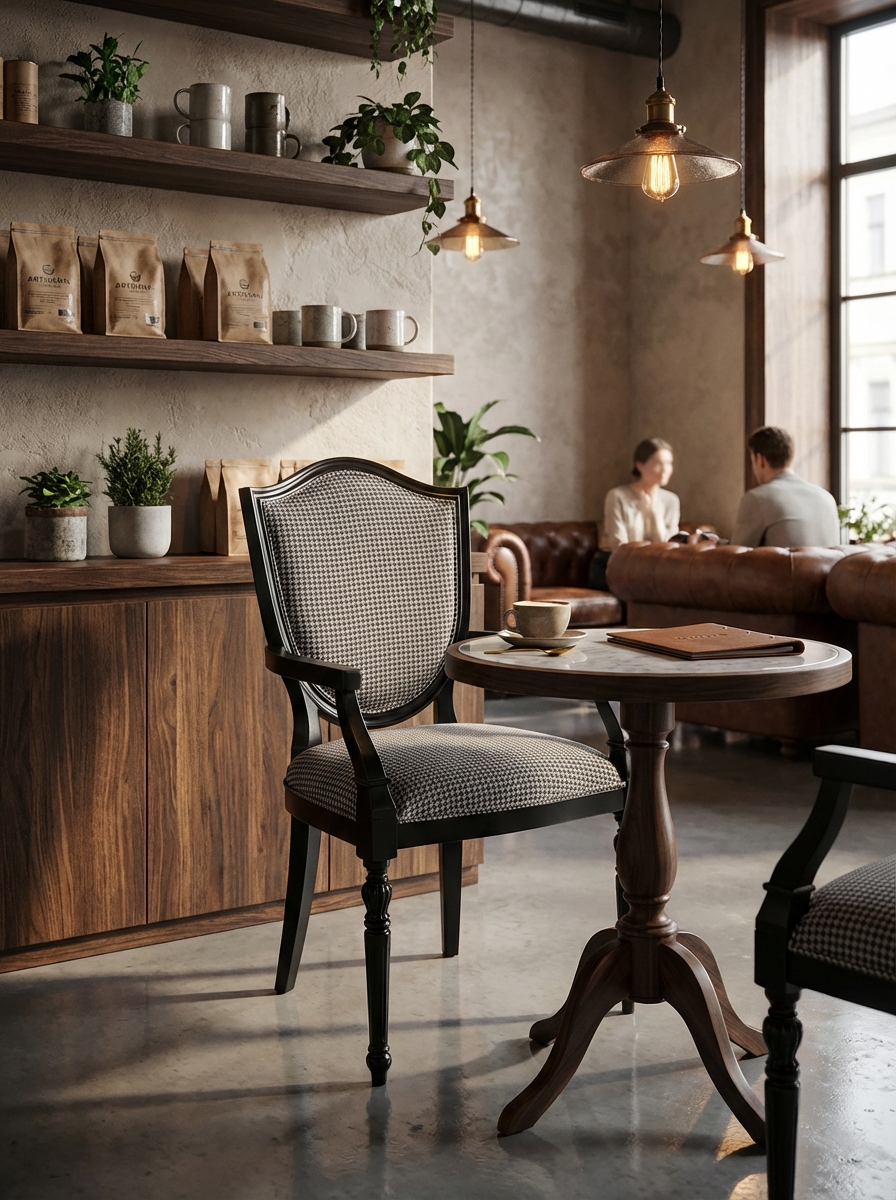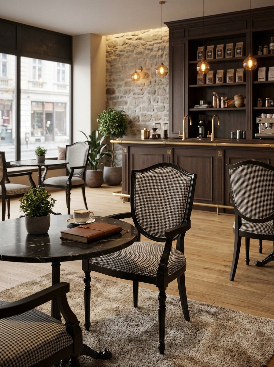 Mimarlar, İşletme Sahipleri ve Satınalma Müdürleri için tasarlanmış Regent Elite Sandalye, mekanınızın premium algısını ve müşteri memnuniyetini yükseltmek üzere geliştirilmiştir. Klasik ve sofistike kazayağı (houndstooth) desenli döşemesi ve tornalı ön ayak detaylarına sahip koyu ahşap çerçevesi, resmi ve şık bir atmosfer yaratır. Bu model, yoğun trafikli otel, kafe ve restoran ortamlarının gerektirdiği B2B dayanıklılık standartlarını karşılar. Güçlendirilmiş yapısı, sık kullanıma bağlı yıpranmayı minimize ederken, leke tutmaz ve kolay temizlenebilir kumaş yüzeyi sayesinde operasyonel bakım maliyetlerinizi düşürür. Regent Elite, kısa sürede amorti edilen ve kârlılığınızı destekleyen garantili bir uzun ömürlülük yatırımıdır. Mekanınızda misafirlere üst düzey konfor sunarak ortalama kalış süresini artırın ve yatırım getirinizi maksimize edin.