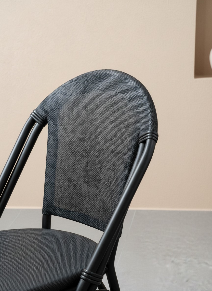 Zarif tasarımı ve dayanıklı yapısıyla hem iç mekan hem de dış mekan kullanımına uygun bistro sandalye. Ergonomik sırt yapısı ve hafif alüminyum gövdesi sayesinde kafe, restoran ve bahçeler için ideal bir kullanım sunar. Hava koşullarına karşı dirençli materyallerden üretilmiştir.