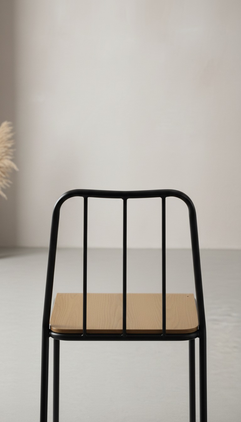 Minimalist ve dayanıklı tasarımıyla dikkat çeken bu sandalye, sağlam metal iskelet yapısı ve ergonomik ahşap oturma alanı ile hem estetik hem de uzun ömürlü kullanım sunar. Modern mutfaklar, kafeler ve çalışma alanları için ideal bir tercihtir.