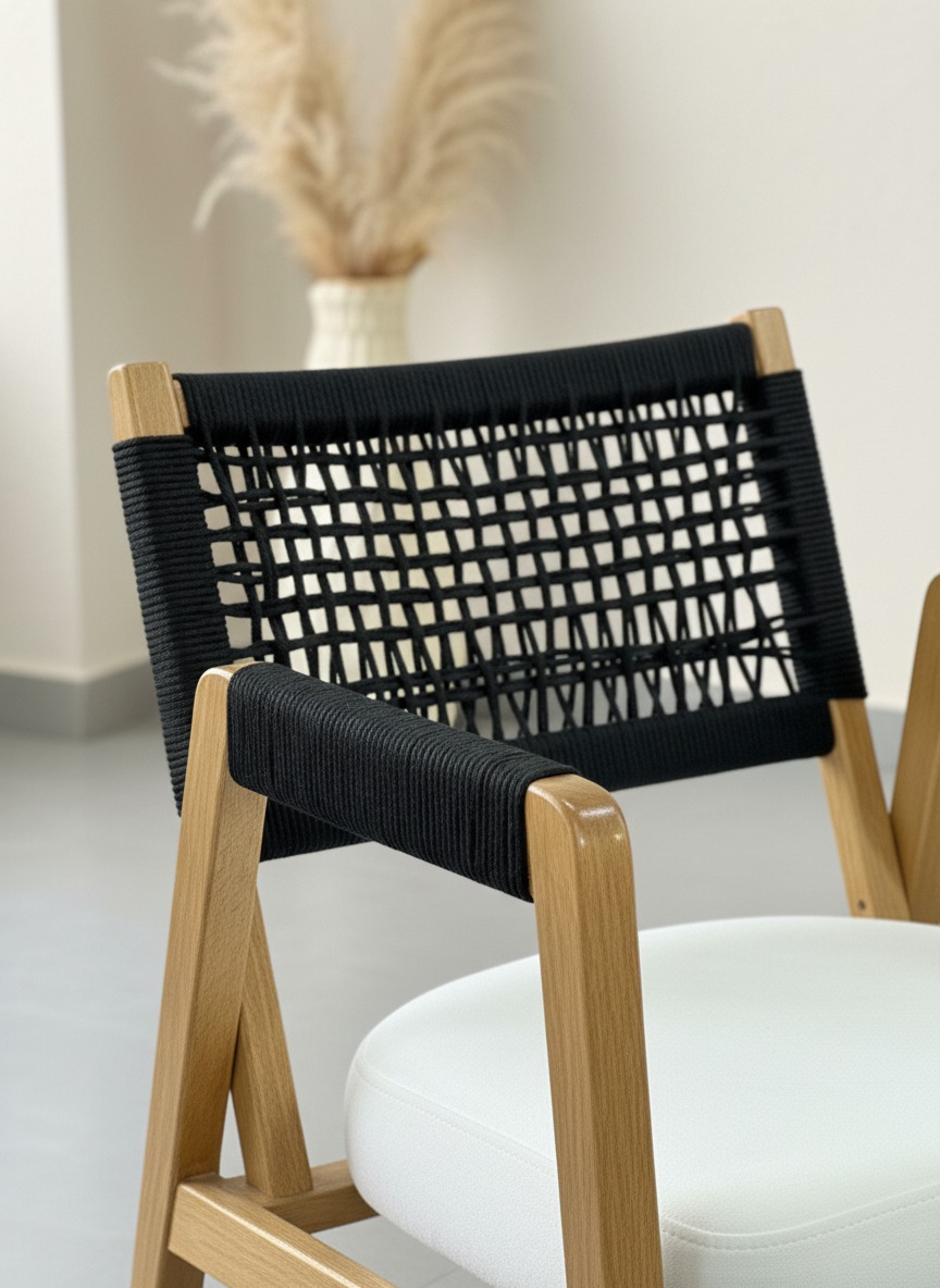Doğal ahşap dokusunu el işçiliği ip örgü detaylarıyla birleştiren Lidya sandalye, ergonomik yapısı ve konforlu oturma alanıyla hem ev hem de ticari mekanlar için ideal bir tercihtir. Modern ve minimalist tasarımıyla her türlü dekorasyon stiline uyum sağlar.