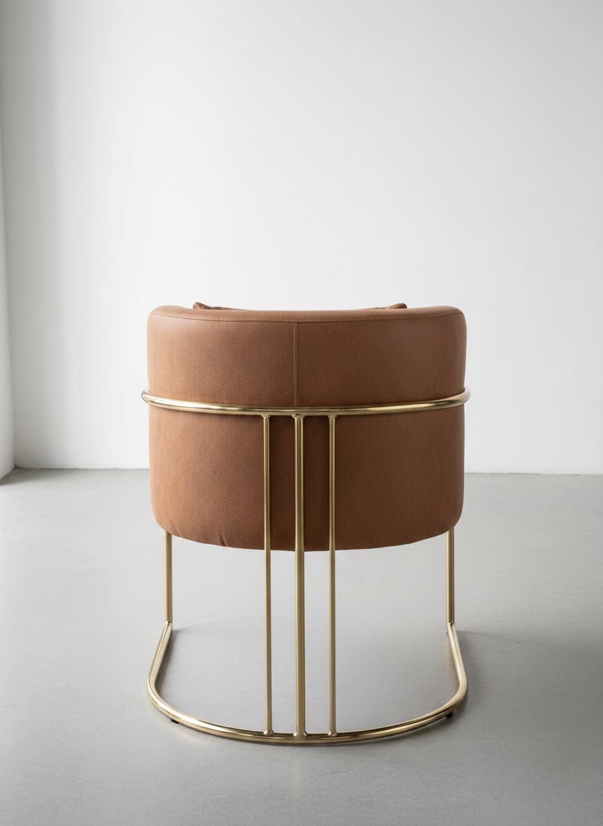 Modern ve estetik bir tasarıma sahip olan bu koltuk, kavisli dayanıklı metal iskeleti ve ergonomik minder yapısı ile hem ev hem de ticari mekanlar için ideal bir kullanım sunar. Sırt desteği sağlayan ilave yastığı ve geniş oturma alanı ile konforu ön planda tutarken, zarif metal ayak detaylarıyla mekanınıza sofistike bir hava katar.