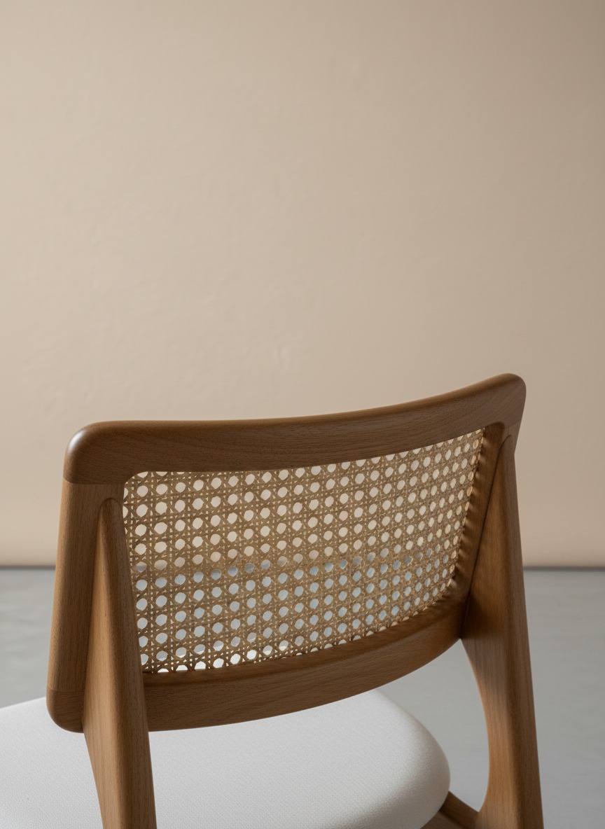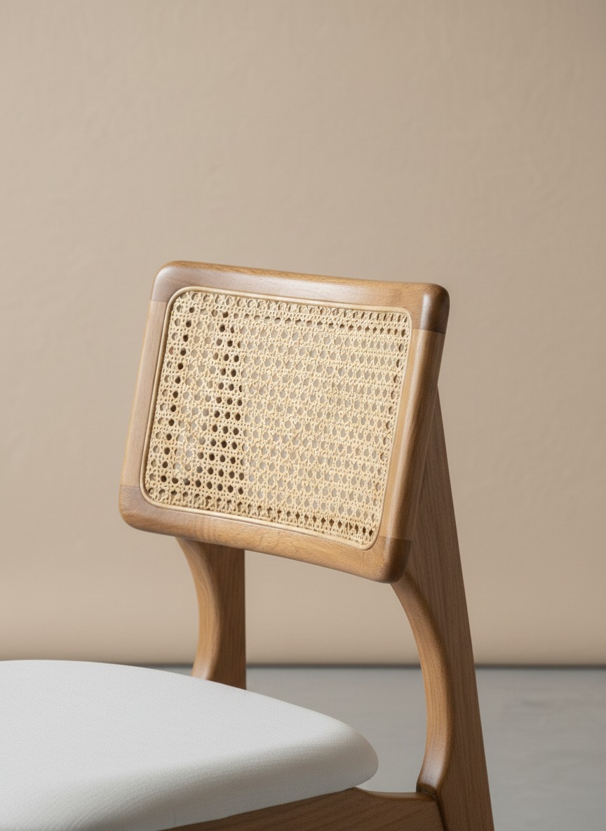 Doğal ahşap işçiliği ile üretilen bu sandalye, sırt kısmındaki geleneksel hazeran örgüsü ve ergonomik kavisli yapısıyla hem klasik hem de modern mekanlara uyum sağlar. Yumuşak dolgulu oturma alanı uzun süreli konfor sunarken, sağlam iskeleti dayanıklılığı garanti eder.
