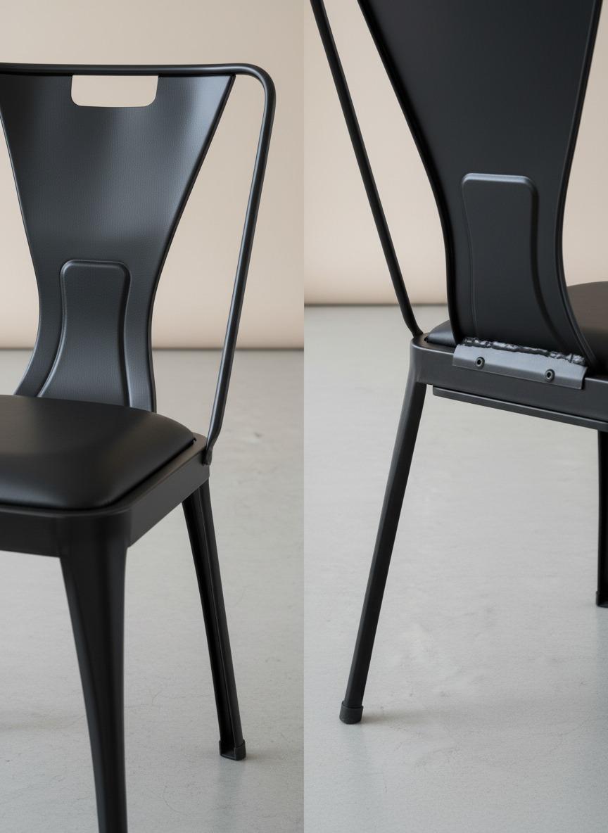 Modern ve endüstriyel çizgileri bir araya getiren bu metal sandalye, dayanıklı yapısı ve ergonomik sırt desteği ile öne çıkar. Yumuşak minderli oturma alanı konforlu bir kullanım sunarken, sağlam metal iskeleti uzun ömürlü kullanım vaat eder. Cafe, restoran veya modern ev dekorasyonları için mükemmel bir tamamlayıcıdır.