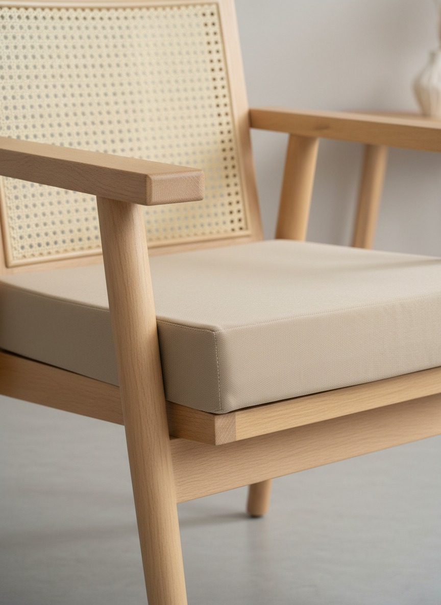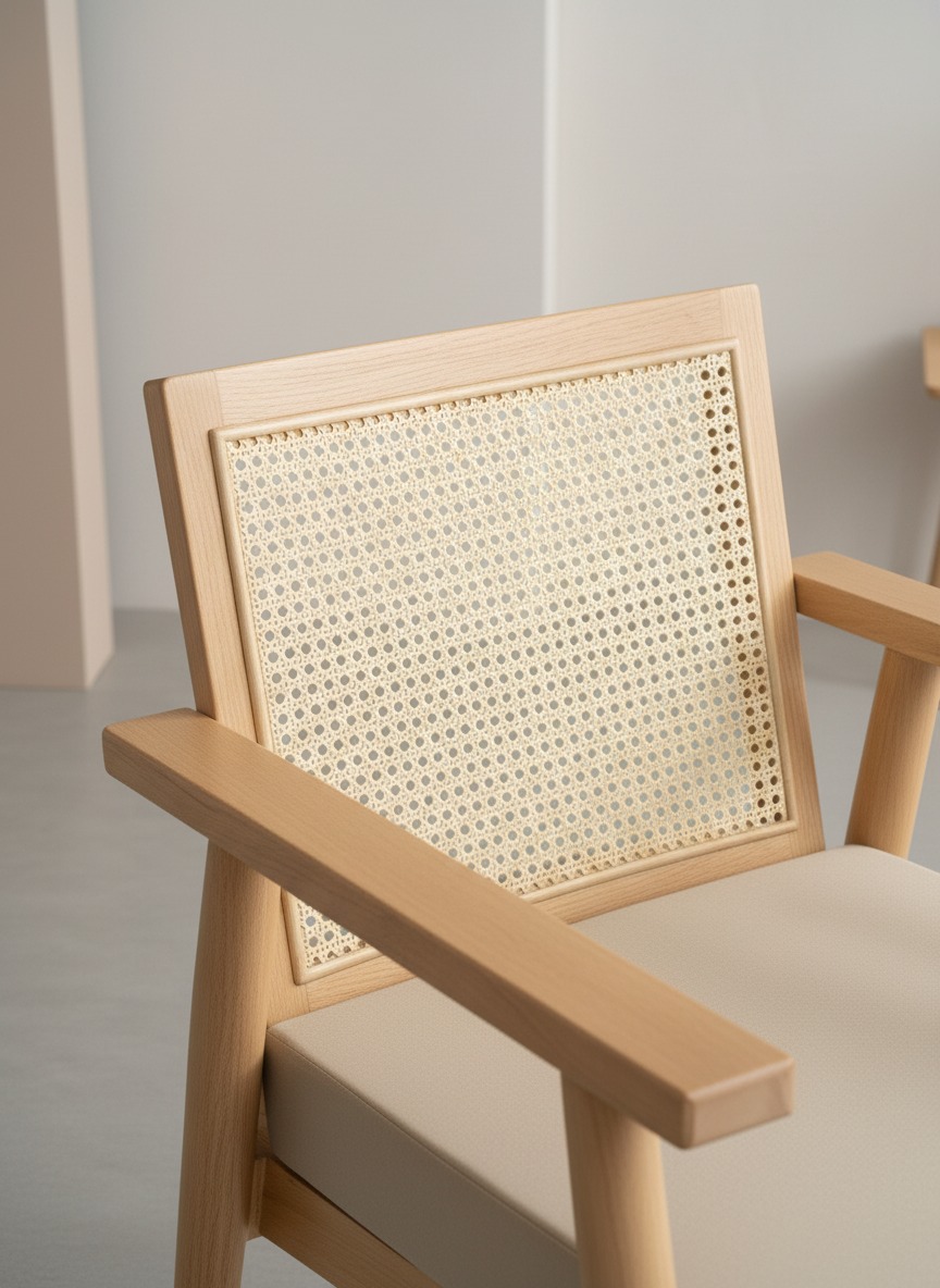 Doğal ahşap işçiliği ile modern tasarımı birleştiren bu hazeranlı koltuk, yaşam alanlarınıza hem konfor hem de estetik katar. Dayanıklı ahşap gövdesi ve geleneksel hazeran örgüsü sırt kısmı ile zamansız bir dekorasyon parçasıdır.