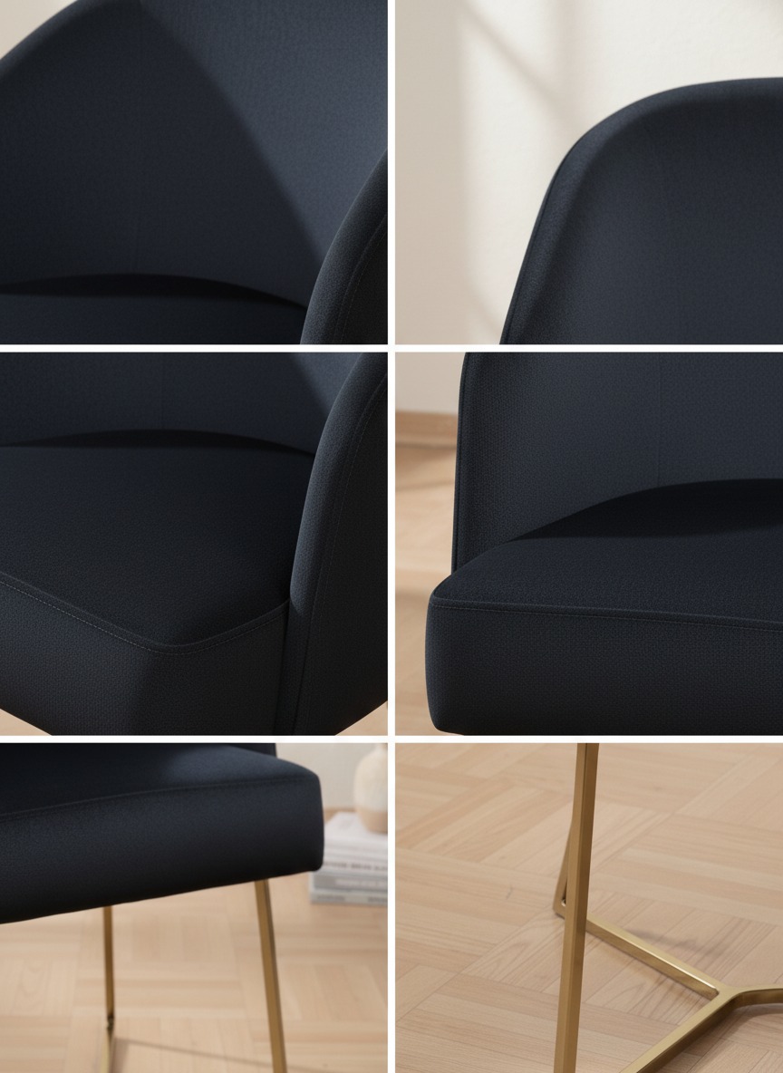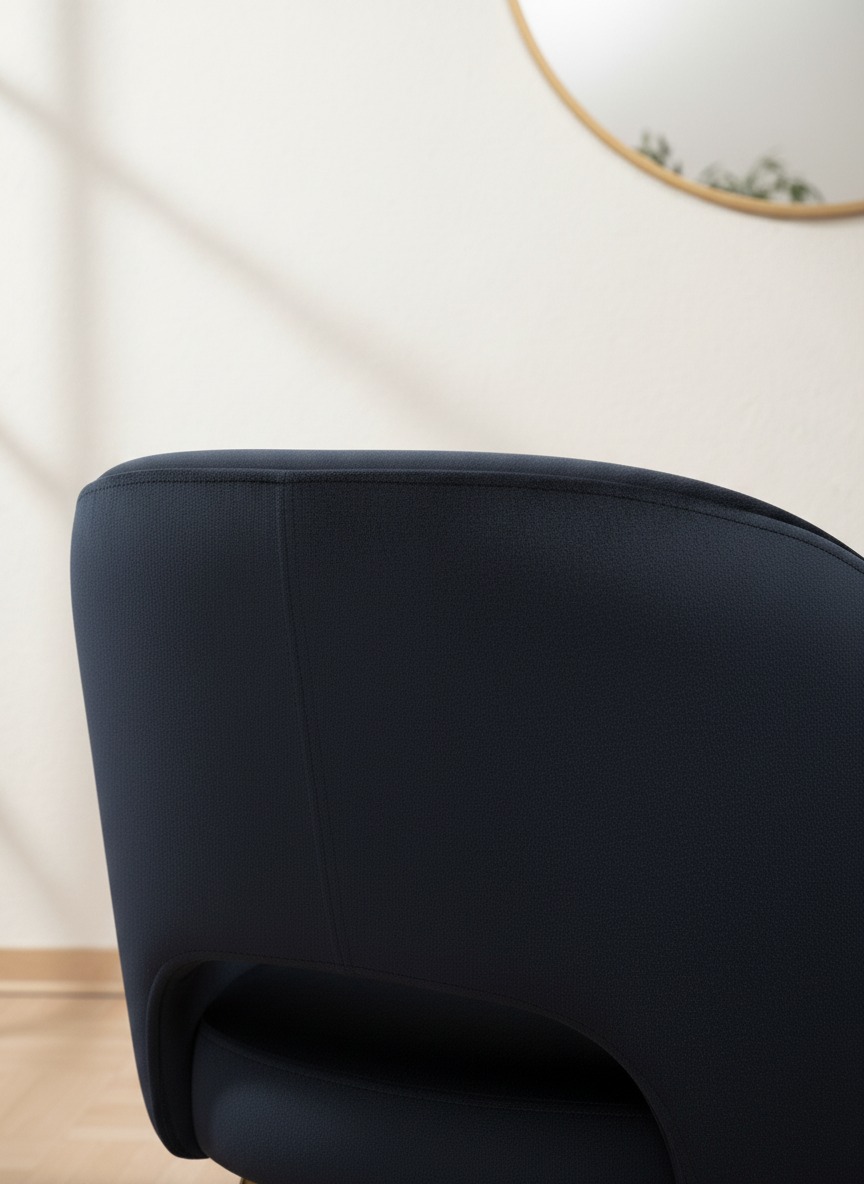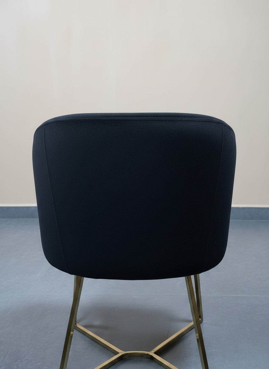 Ergonomik kavisli sırt yapısı ve geometrik formdaki sağlam metal ayakları ile hem konforu hem de estetik görünümü bir arada sunar. Hem ev kullanımı hem de otel, kafe gibi işletmeler için lüks bir atmosfer yaratır.