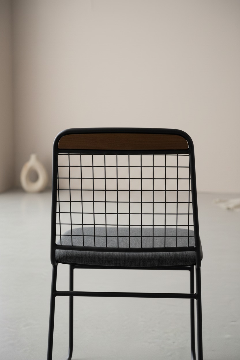 Minimalist ve endüstriyel tasarımıyla öne çıkan bu tel sandalye, sağlam metal iskeleti ve sırt kısmındaki ahşap detayıyla estetik bir görünüm sunar. Konforlu oturma alanı sayesinde mutfak, çalışma odası veya kafe gibi alanlar için mükemmel bir tercihtir.