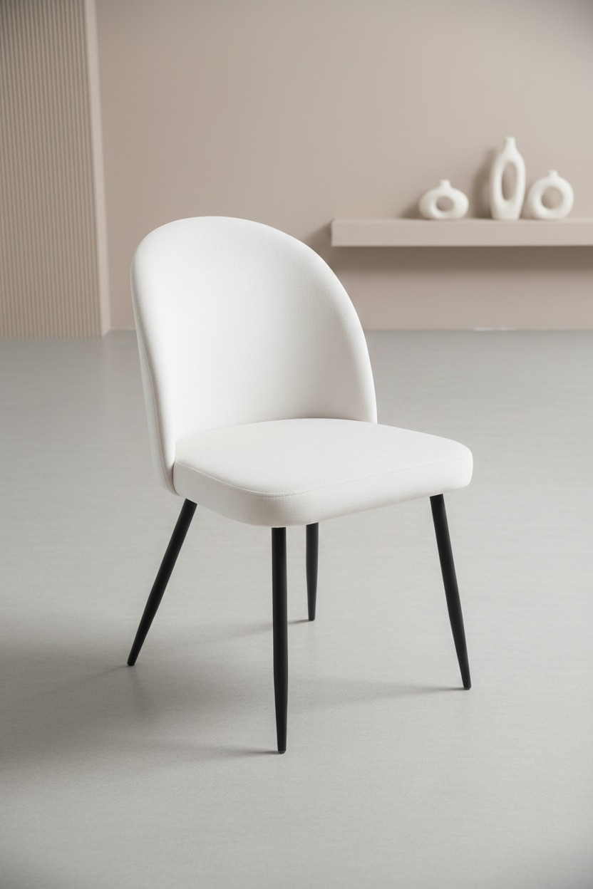 Ergonomik kavisli sırt yapısı ve dayanıklı ince metal ayakları ile modern bir görünüm sunan bu sandalye, hem ev hem de ticari mekanlar için idealdir. Minimalist tasarımıyla farklı dekorasyon stillerine kolayca uyum sağlar.